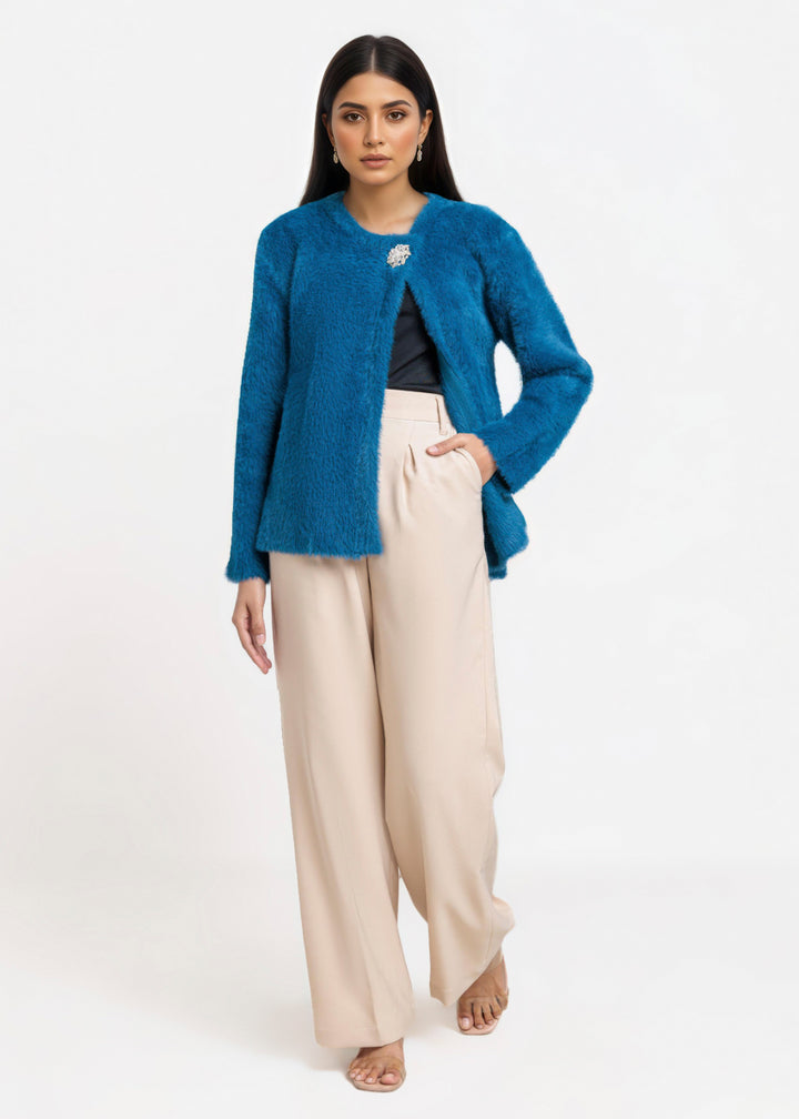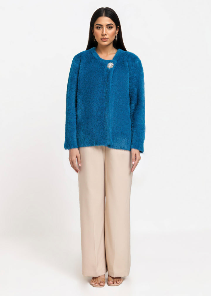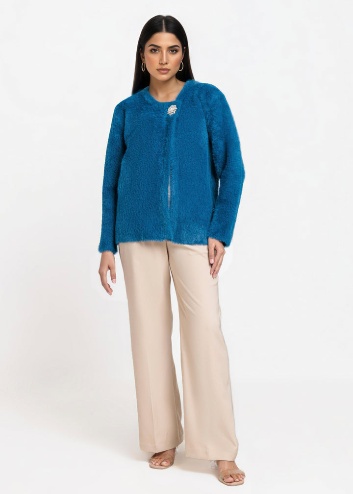 Teal-Round Neck Full Sleeves Cardigan Sweater (25Y-003-67)