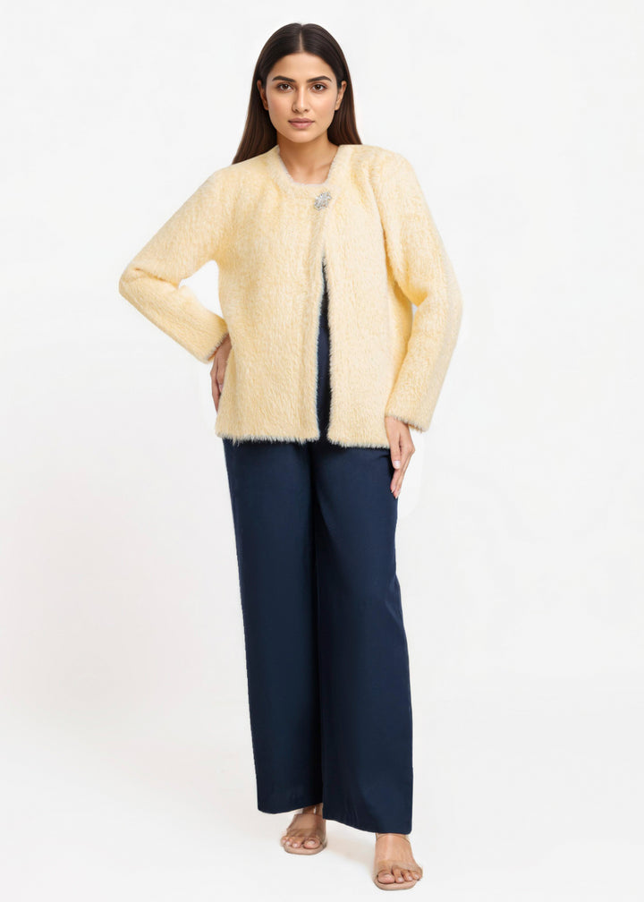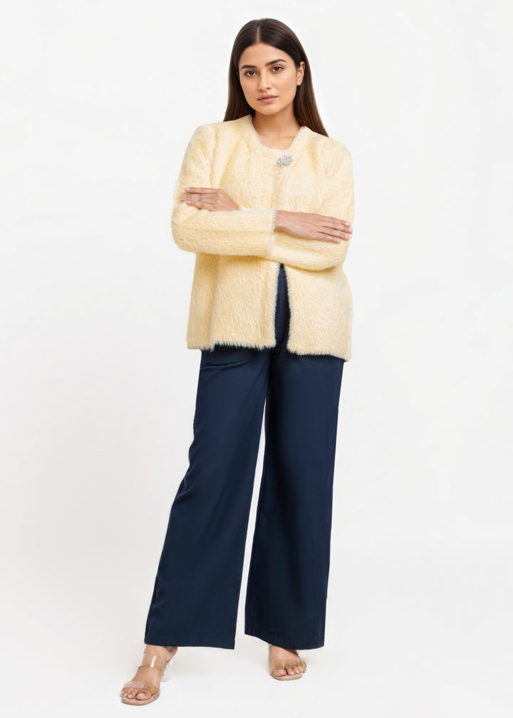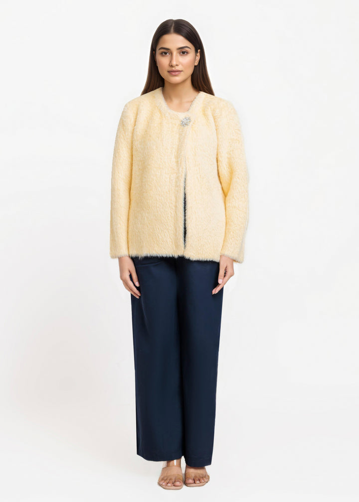 Yellow-Round Neck Full Sleeves Cardigan Sweater (25Y-003-67)