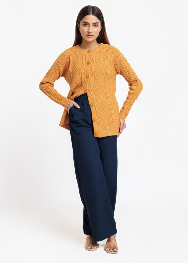 Golden-Round Neck Full Sleeves Cardigan Sweater (25Y-006-67)