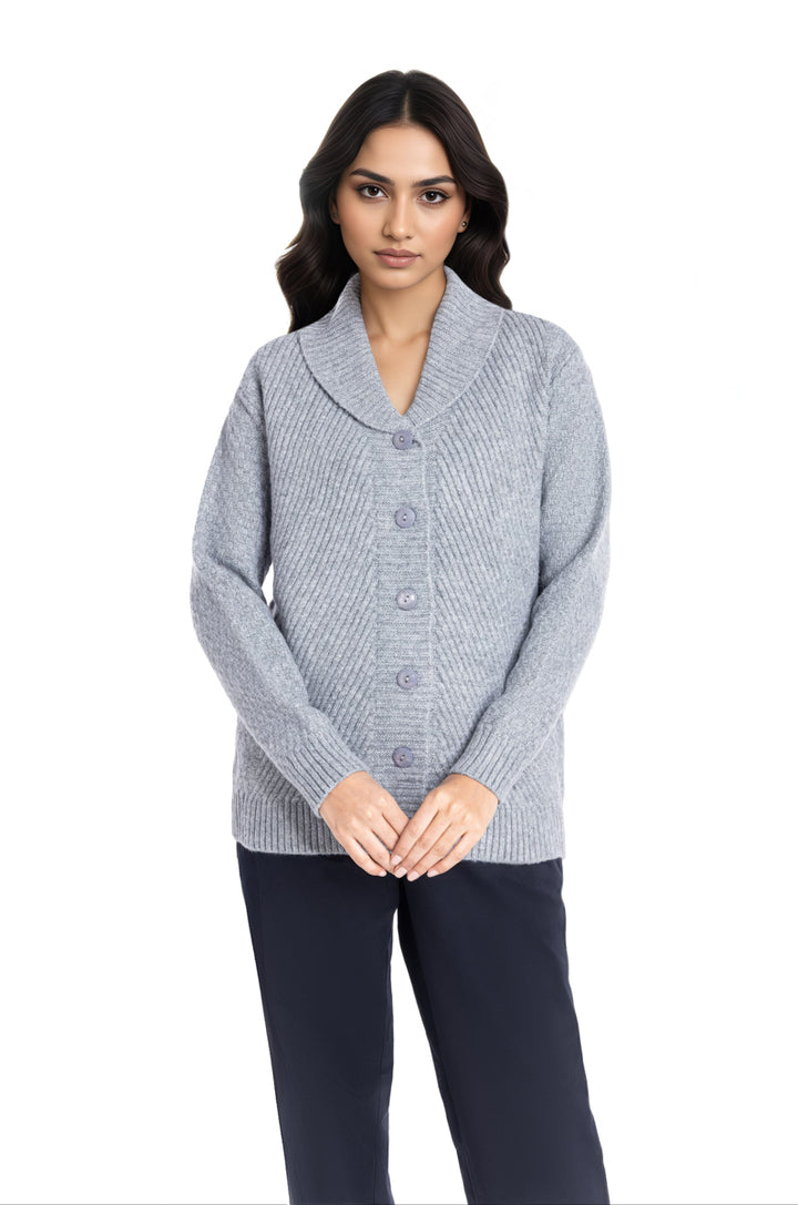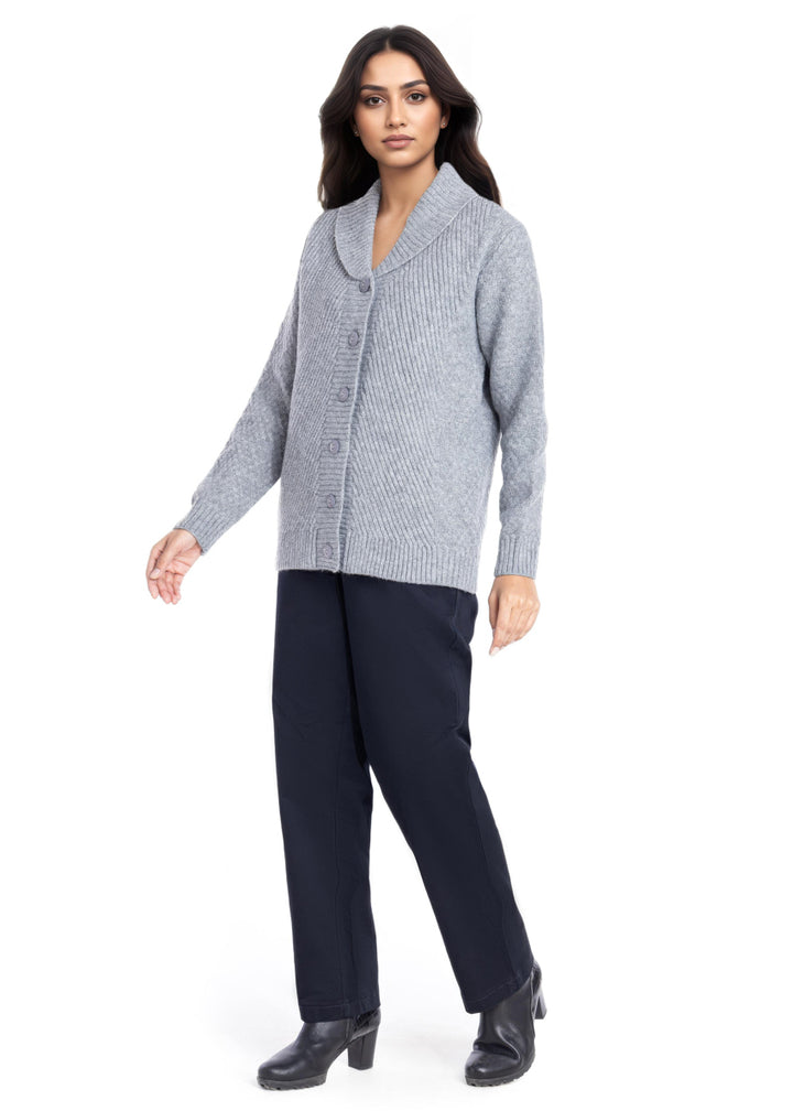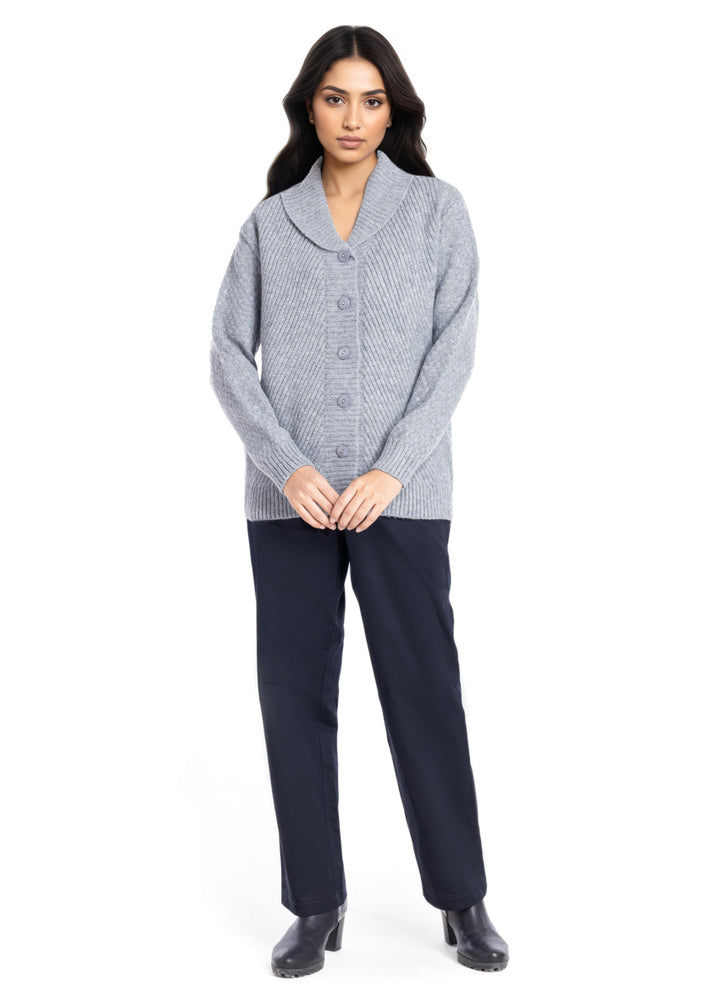 Grey-Shawl Collar Full Sleeves Cardigan Sweater (25Y-008-67)