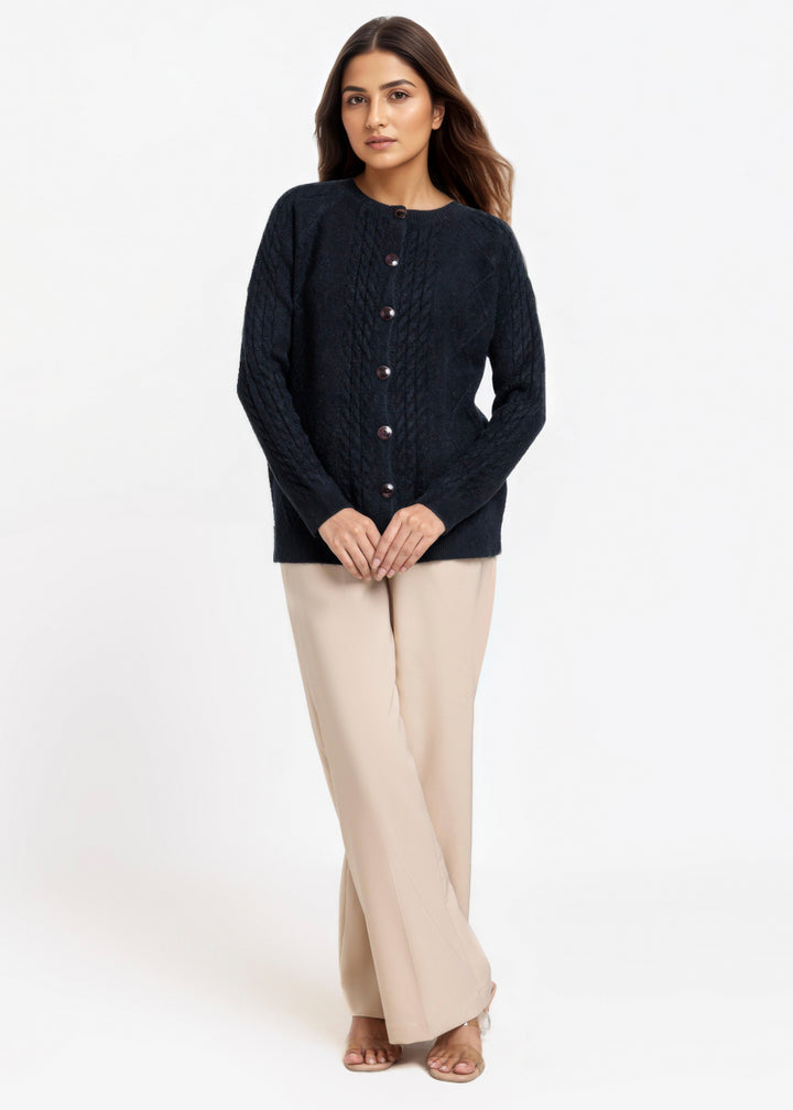 Black-Round Neck Full Sleeves Cardigan Sweater (25Y-009-67)