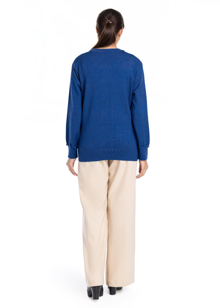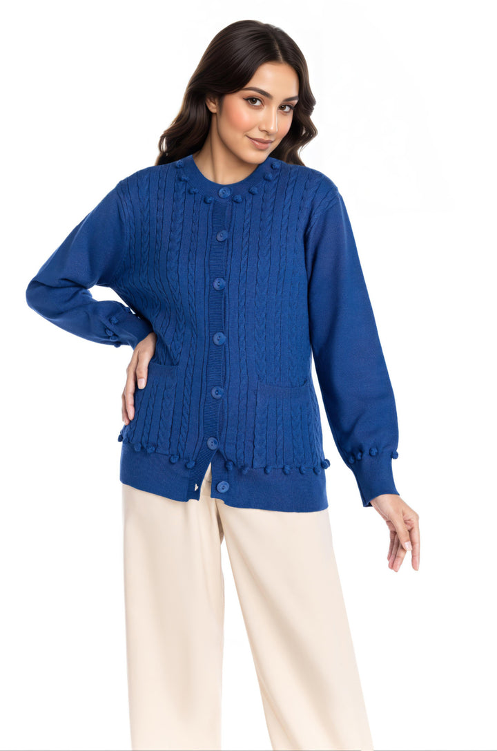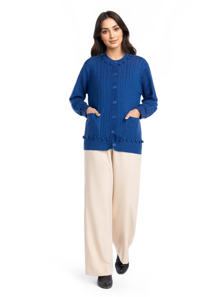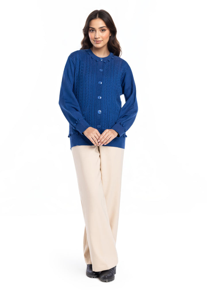 R-Blue-Round Neck Full Sleeves Cardigan Sweater (25Y-010-67)