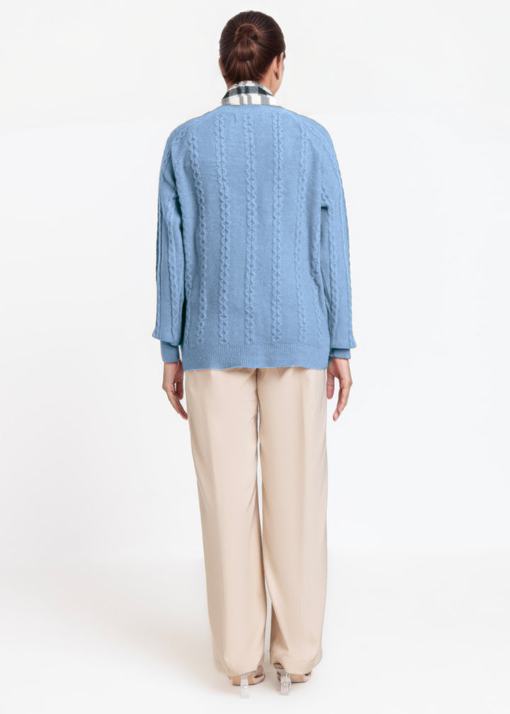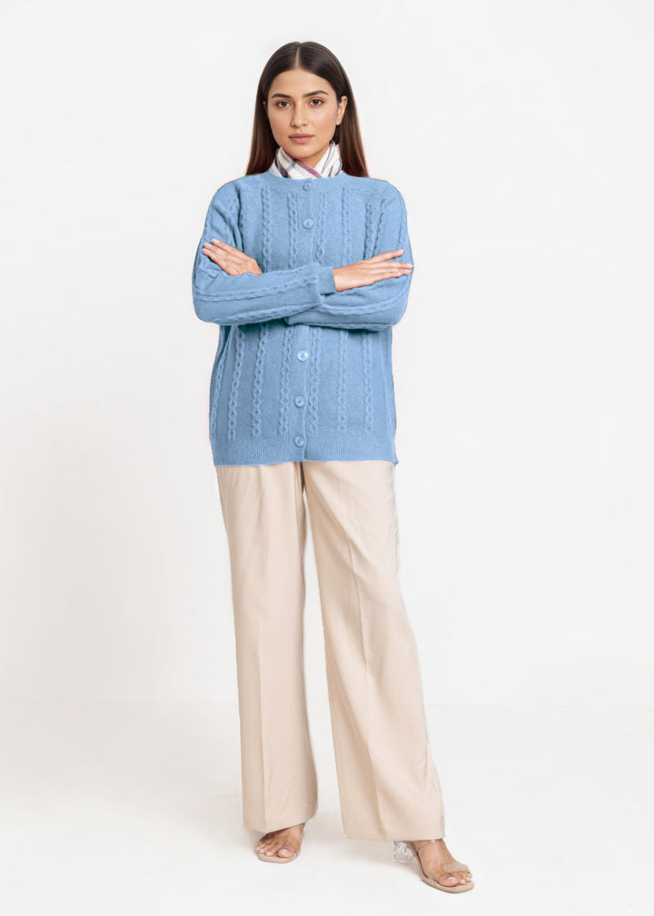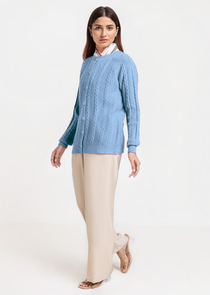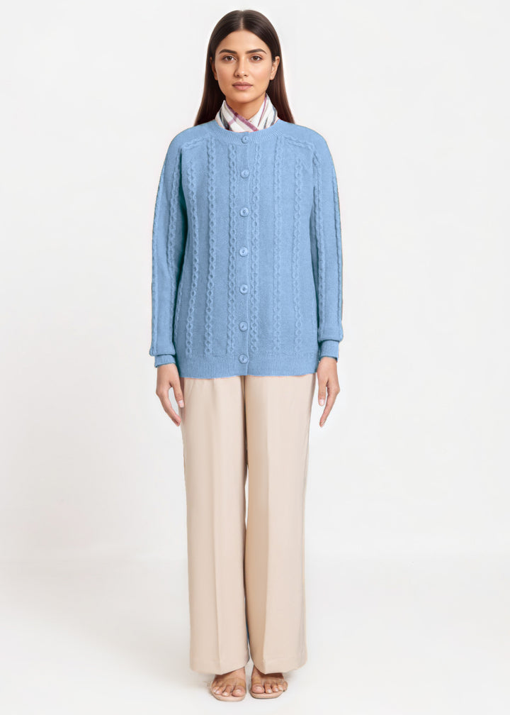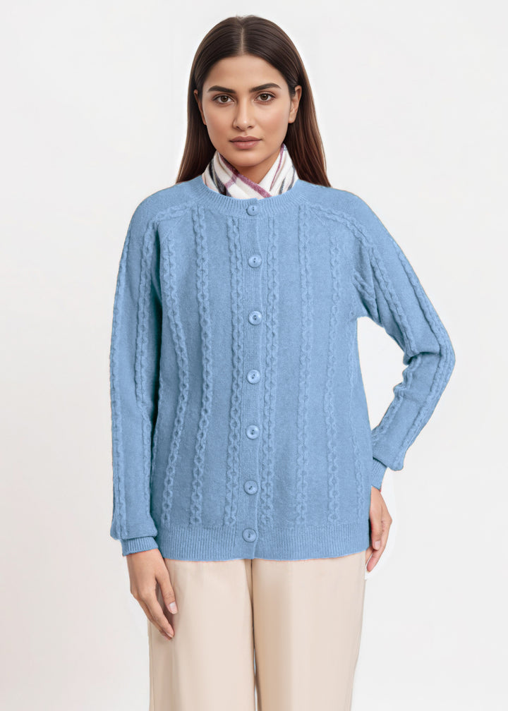 Blue-Round Neck Full Sleeves Cardigan Sweater (25Y-012-67)