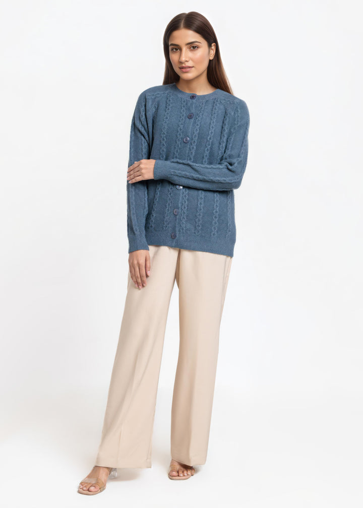 Green-Round Neck Full Sleeves Cardigan Sweater (25Y-012-67)