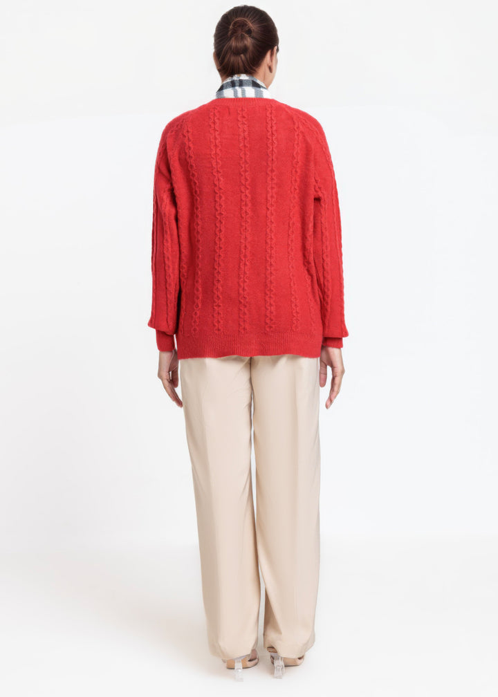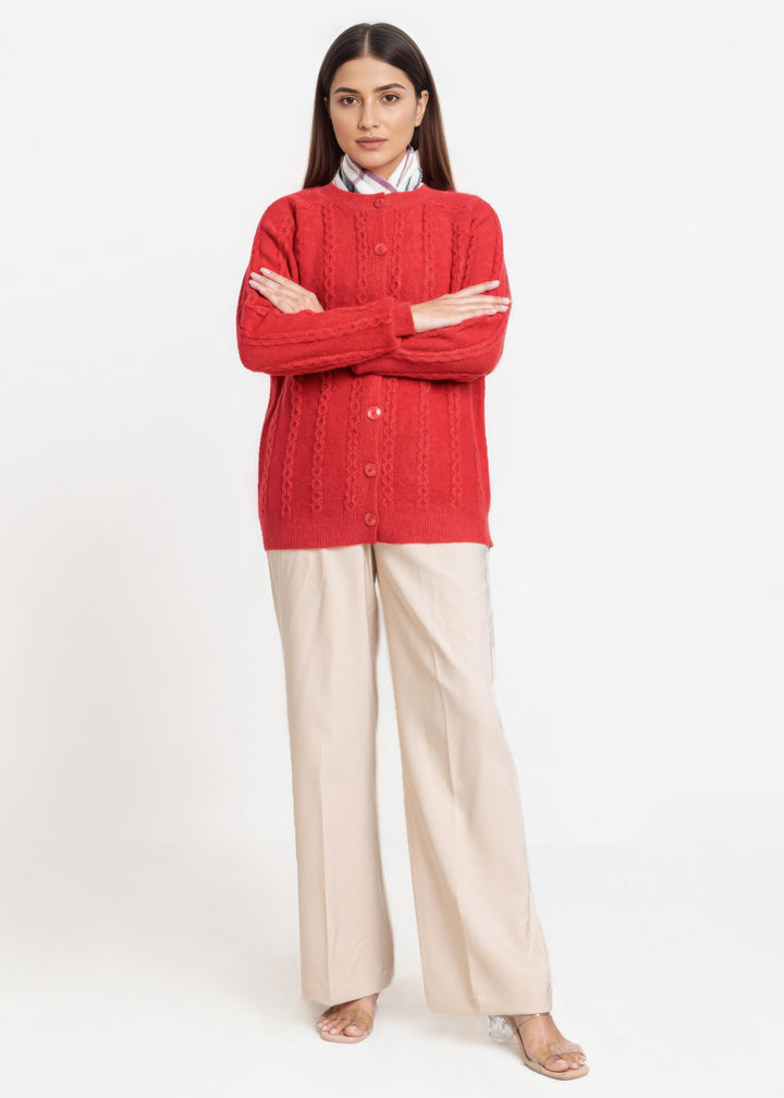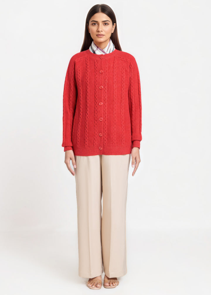 Red-Round Neck Full Sleeves Cardigan Sweater (25Y-012-67)