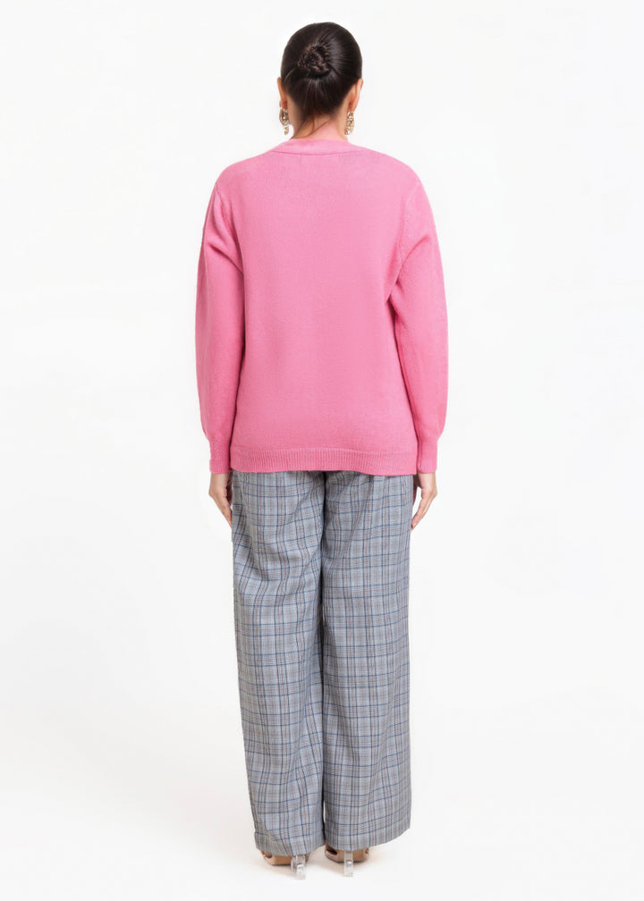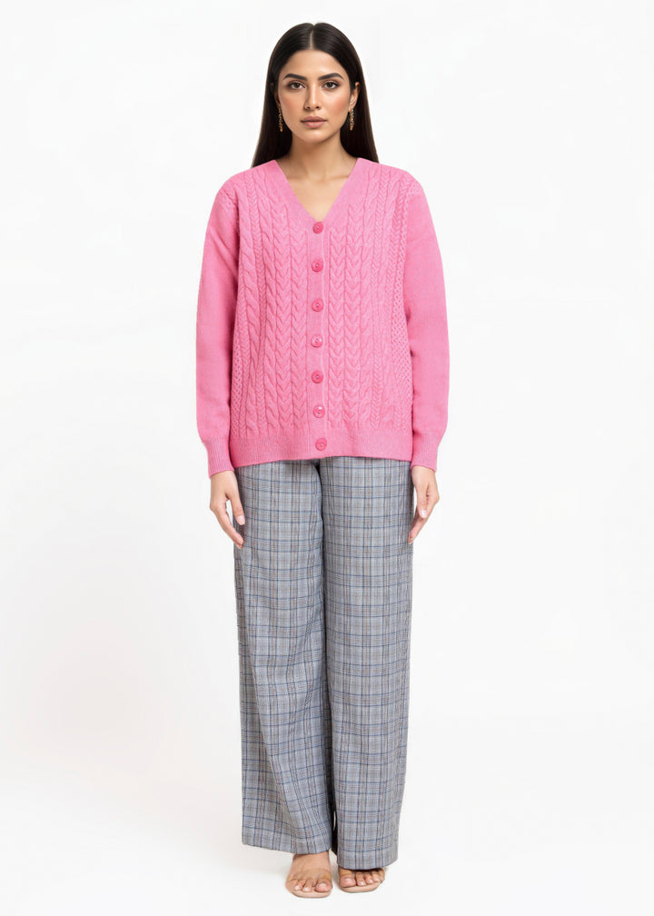 Pink-V-Cardigan Full Sleeves Sweater (25Y-015-67)