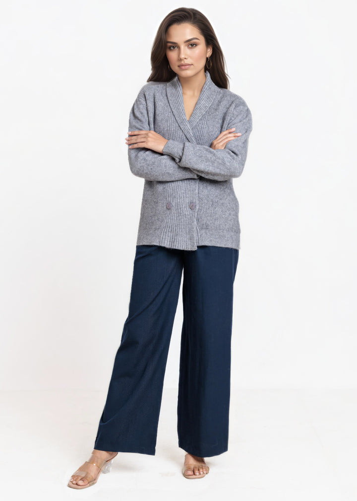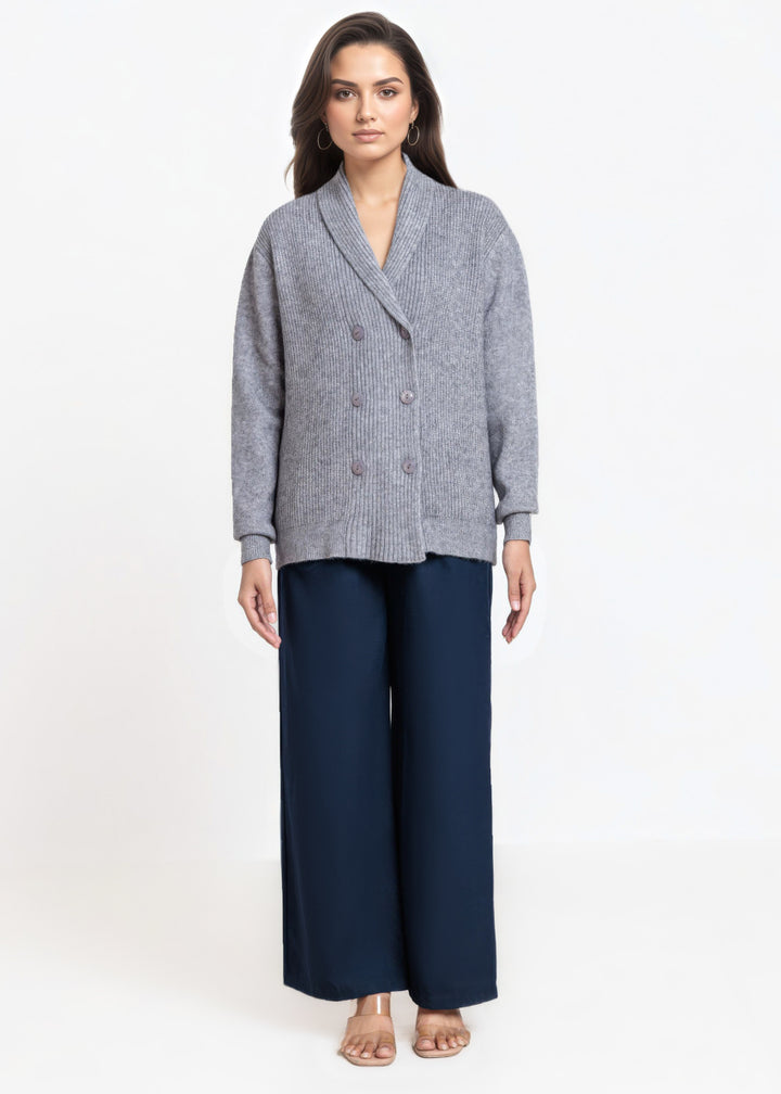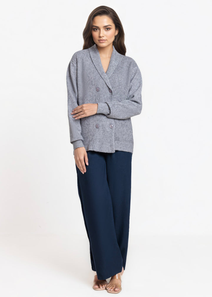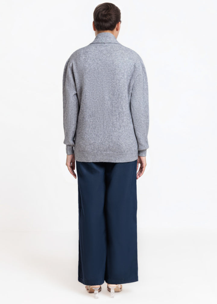 Grey-Shawl Collar Cardigan Full Sleeves Sweater (25Y-018-67)