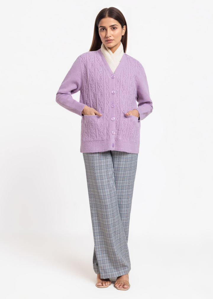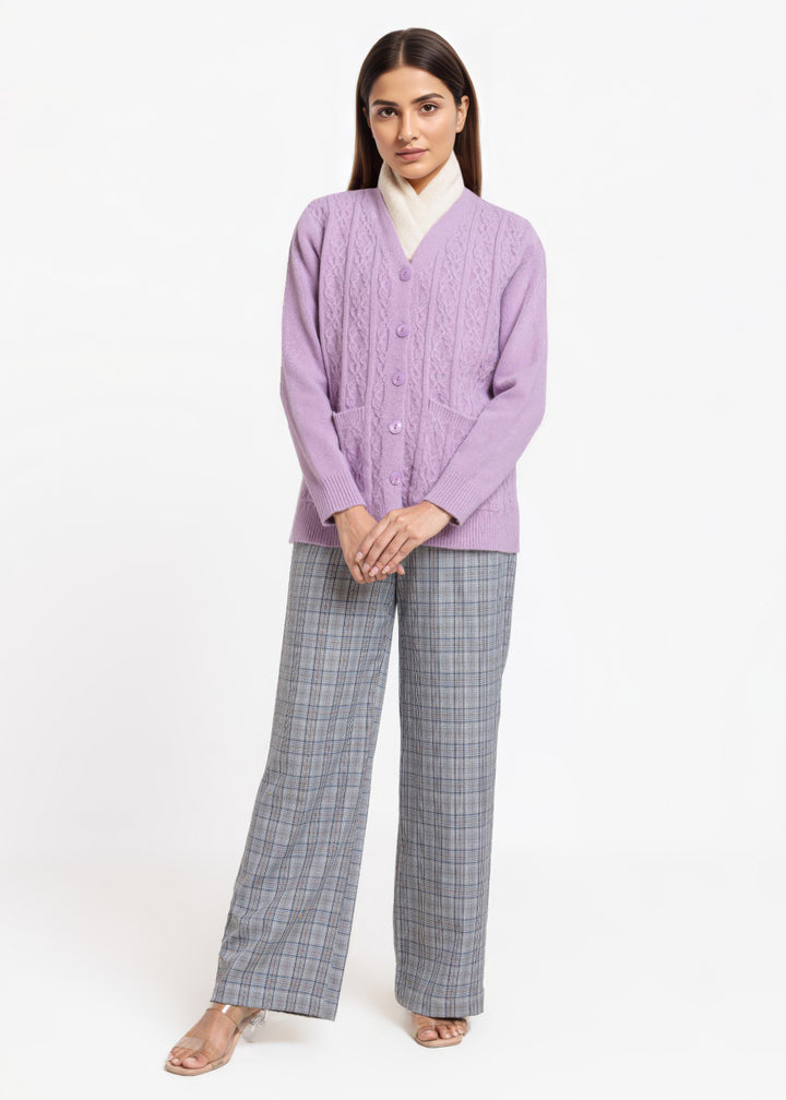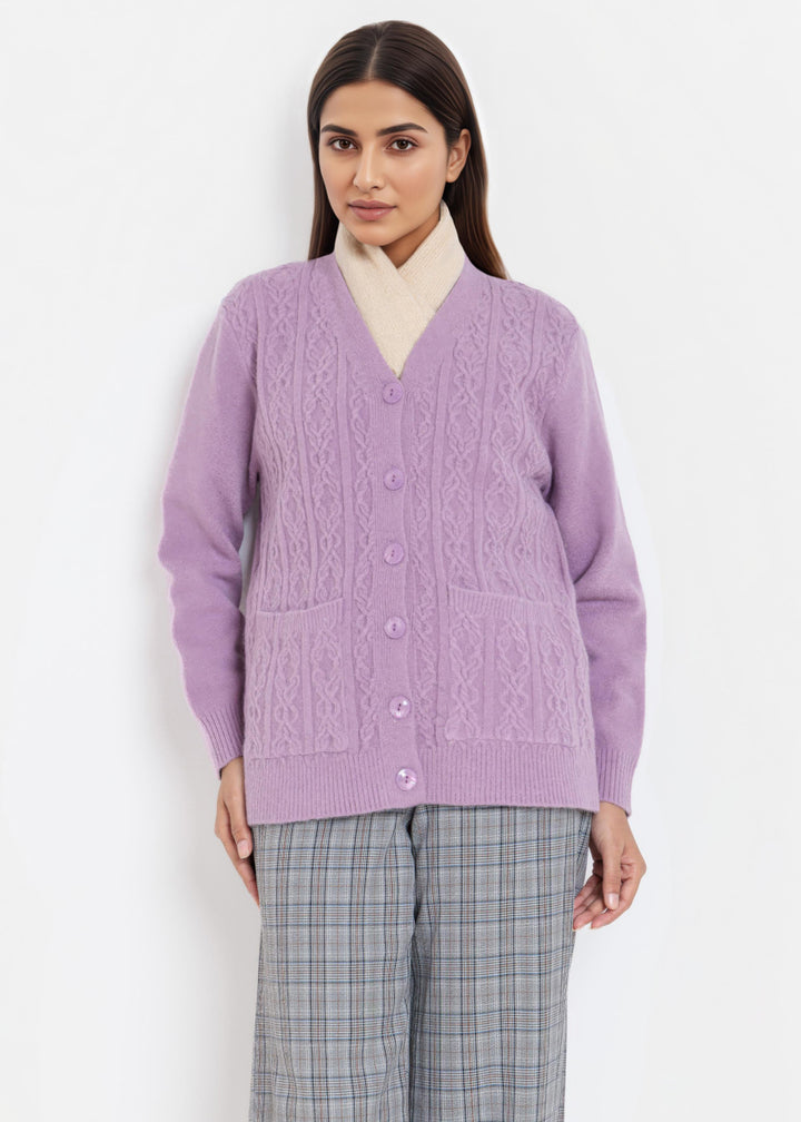 Purple-V-Cardigan Full Sleeves Sweater (25Y-019-67)