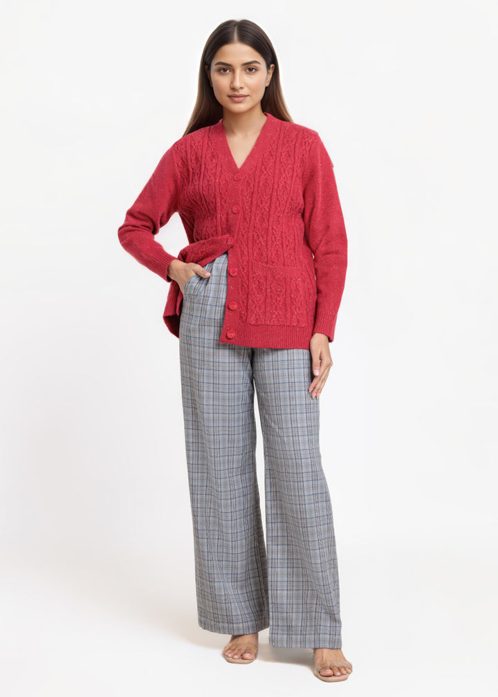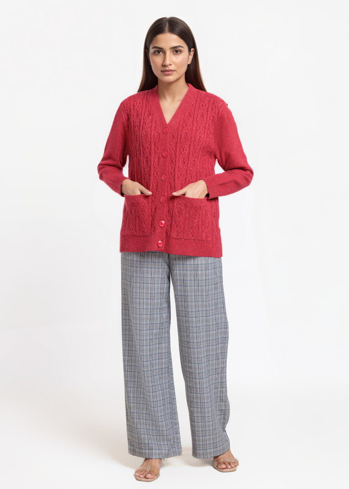 Red-V-Cardigan Full Sleeves Sweater (25Y-019-67)