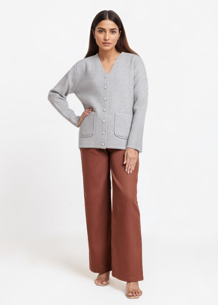 A-Grey-V-Cardigan Full Sleeves Sweater (25Y-022-67)