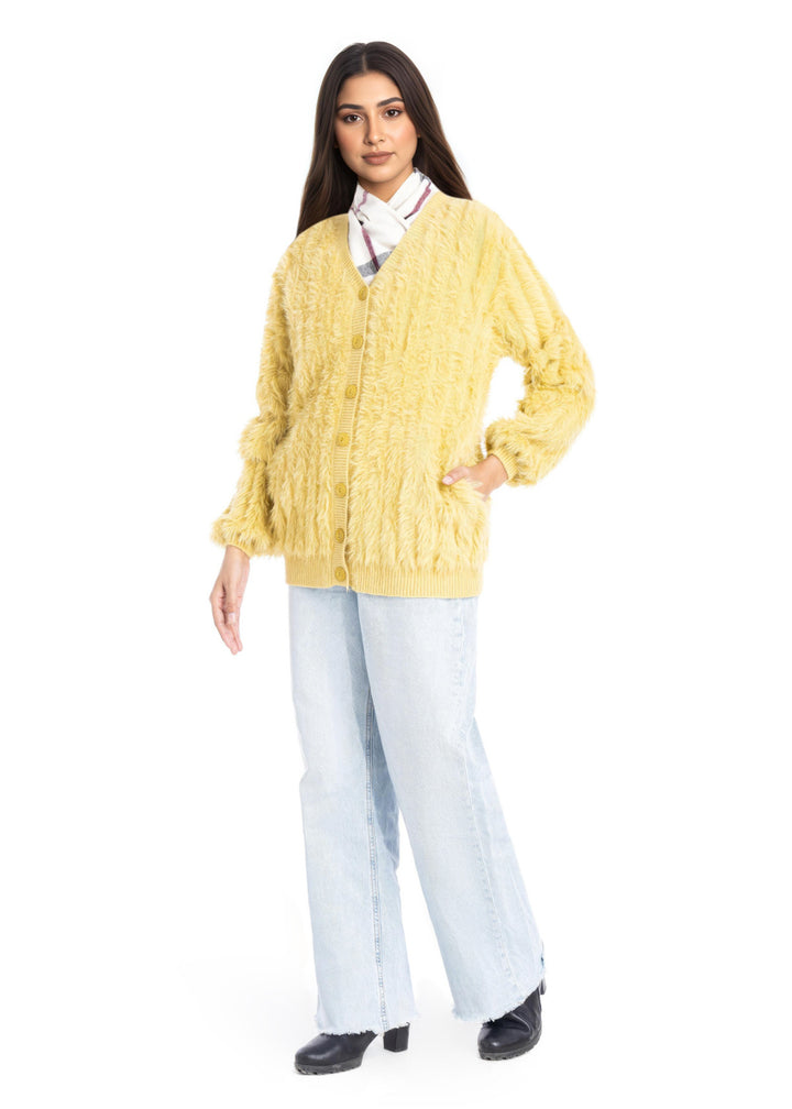 Lime-V Neck Cardigan Full Sleeves Sweater (25Y-024-67)