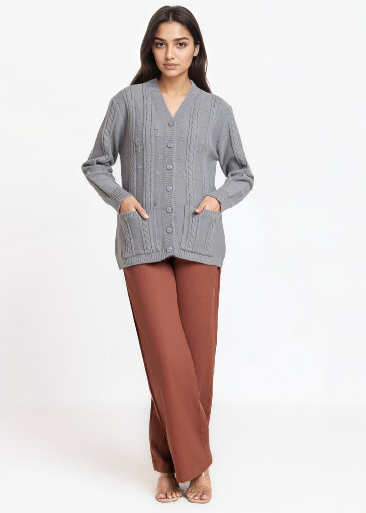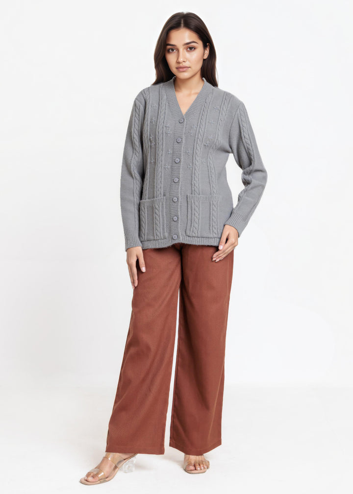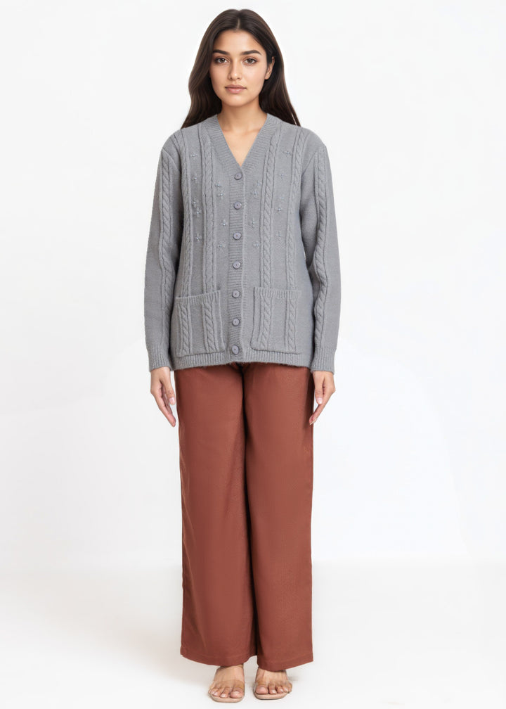 Grey-V-Cardigan Full Sleeves Sweater (25Y-025-67)