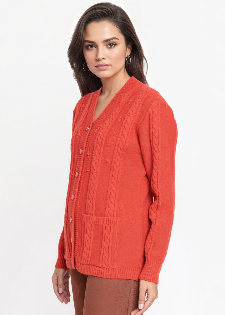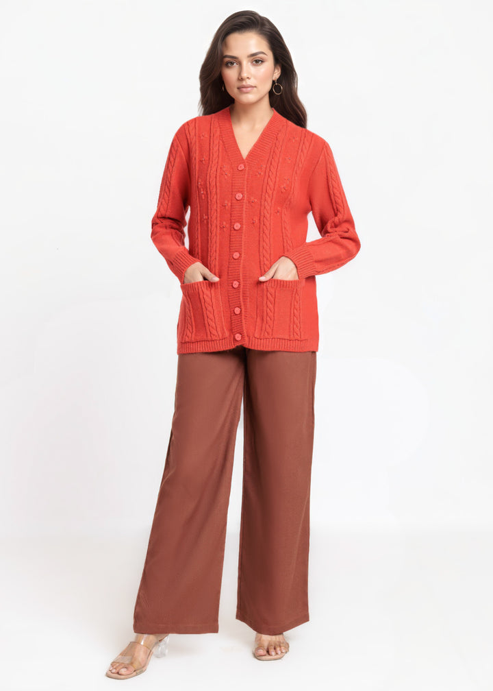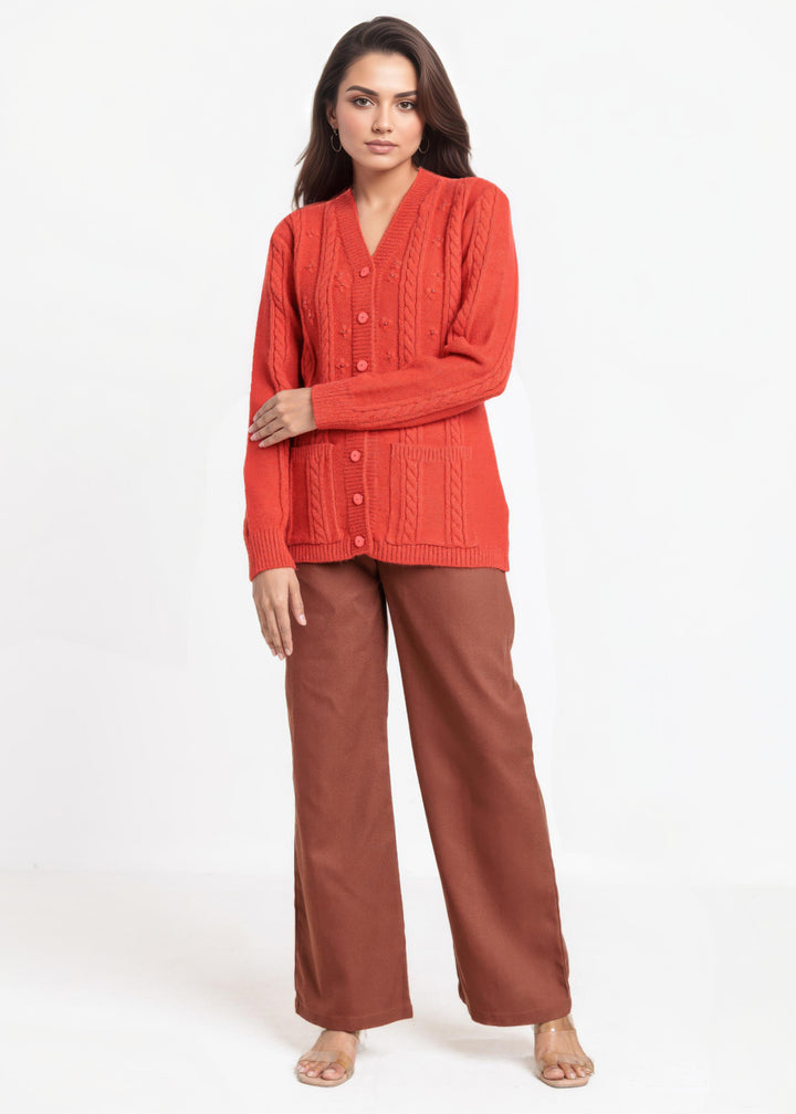 Rust-V-Cardigan Full Sleeves Sweater (25Y-025-67)