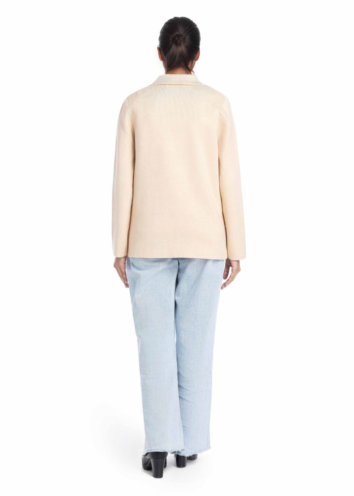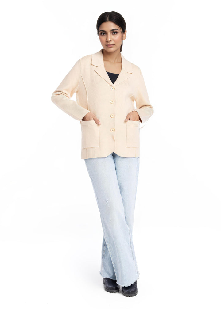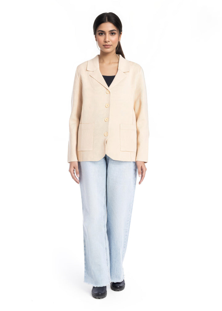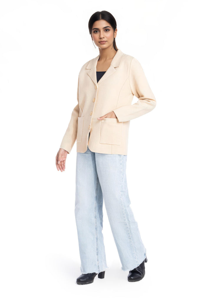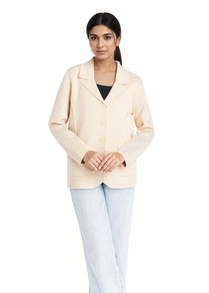 Beige-Notched Collar Full Sleeves Cardigan Sweater (25Y-030-67)