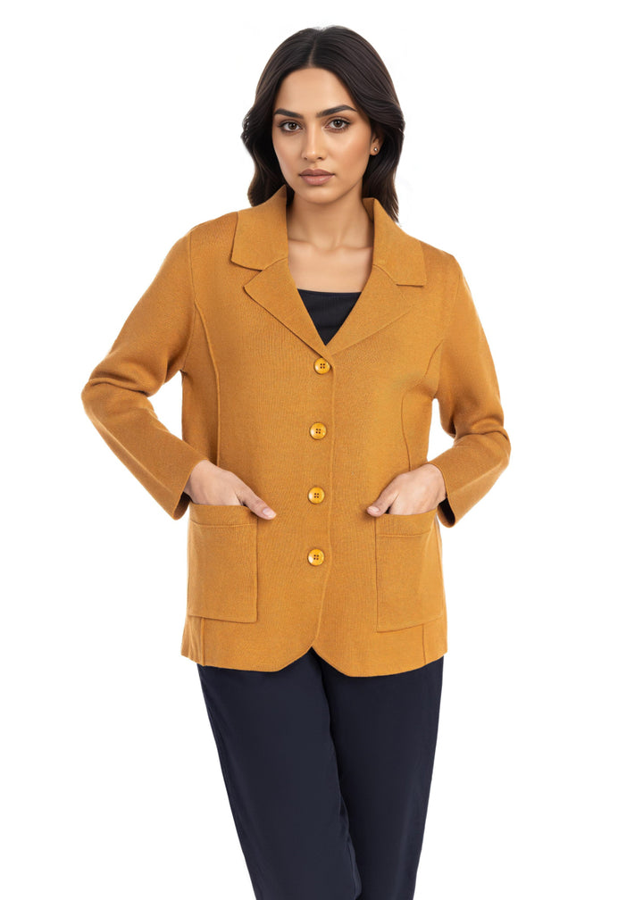 Mustard-Notched Collar Full Sleeves Cardigan Sweater (25Y-030-67)