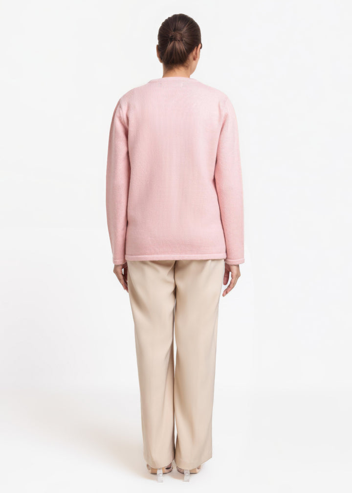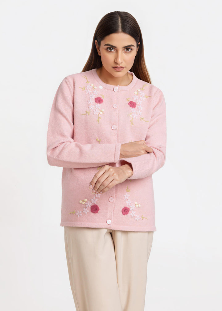 L-Pink-Round Neck Full Sleeves Cardigan Sweater (25Y-031-67)