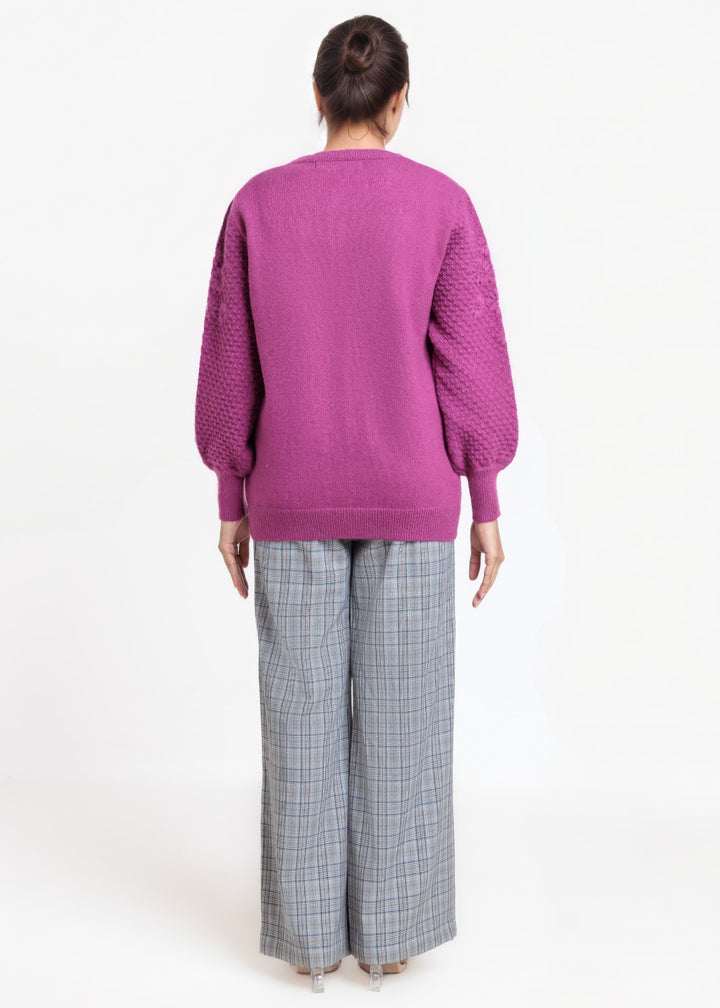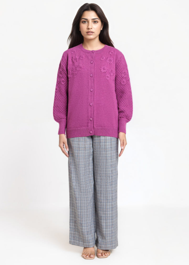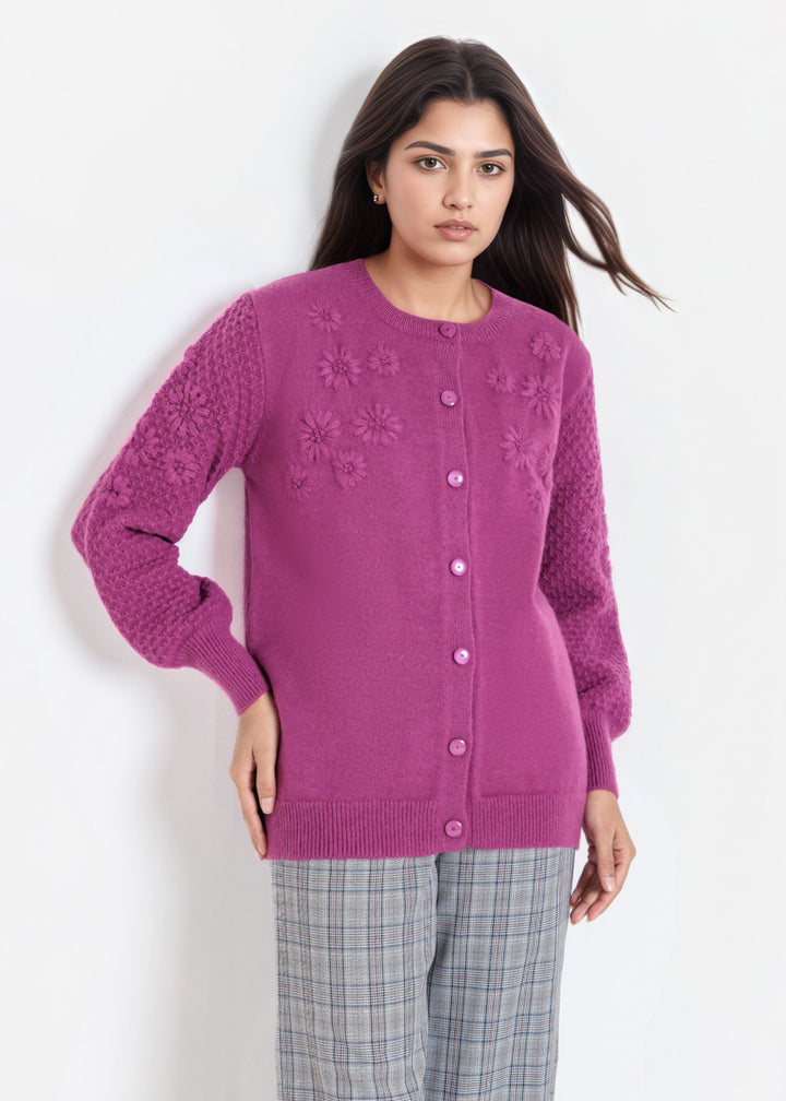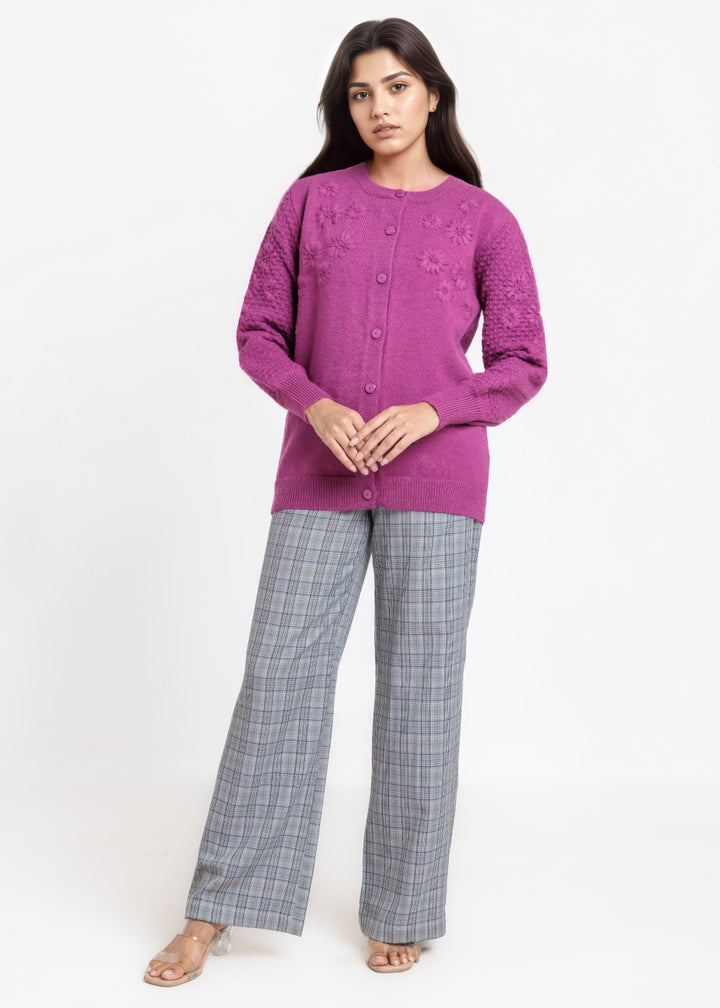 Purple-Round Neck Full Sleeves Cardigan Sweater (25Y-032-67)