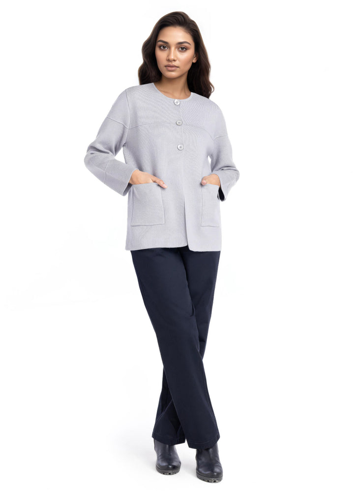 Grey-Round Neck Full Sleeves Cardigan Sweater (25Y-034-67)