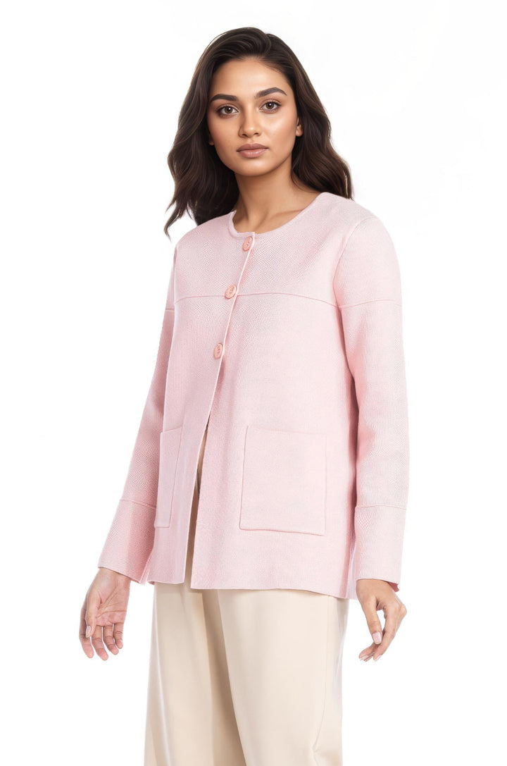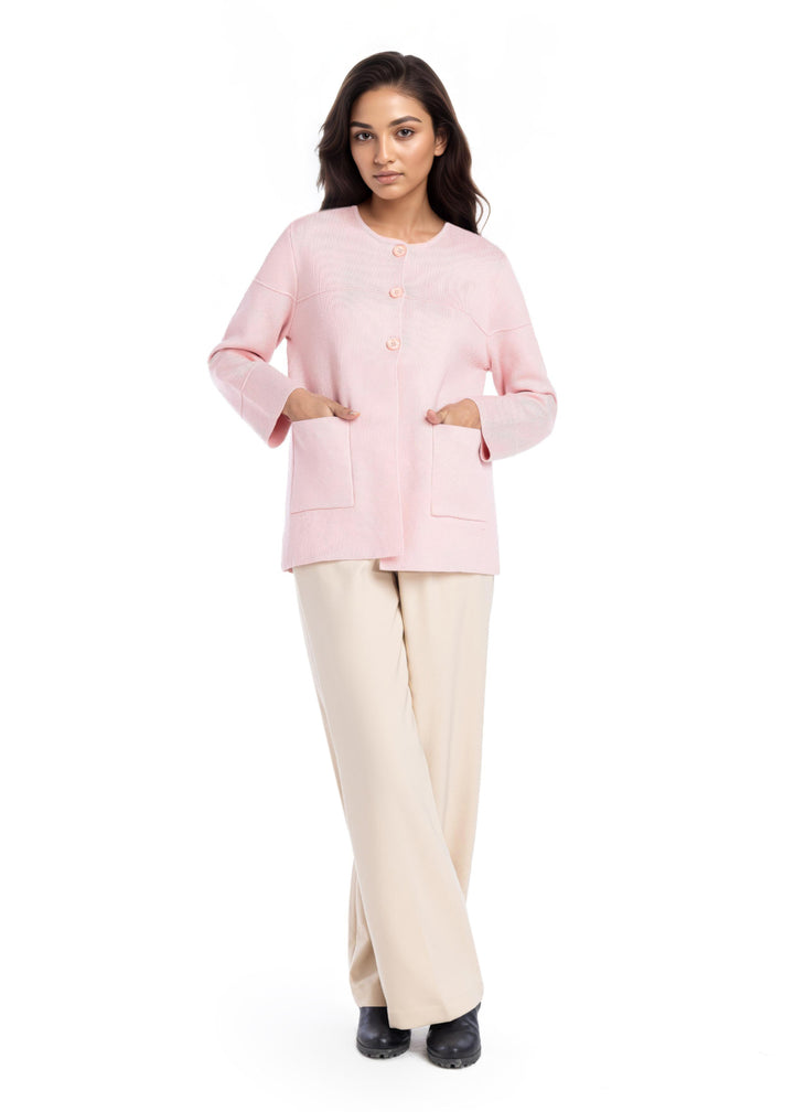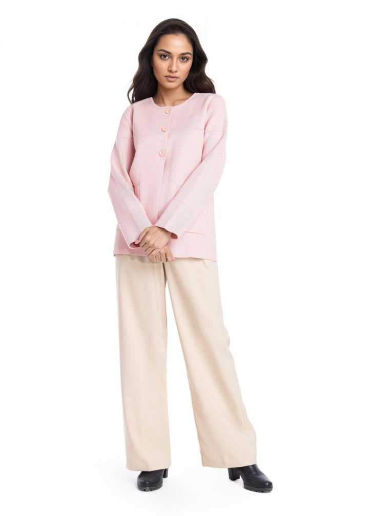 L-Pink-Round Neck Full Sleeves Cardigan Sweater (25Y-034-67)