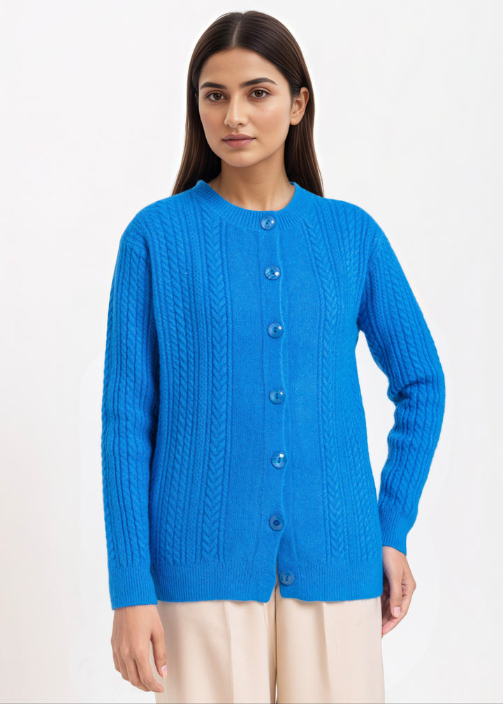 R-Blue-Round Neck Cardigan Full Sleeves Sweater (25Y-054-67)
