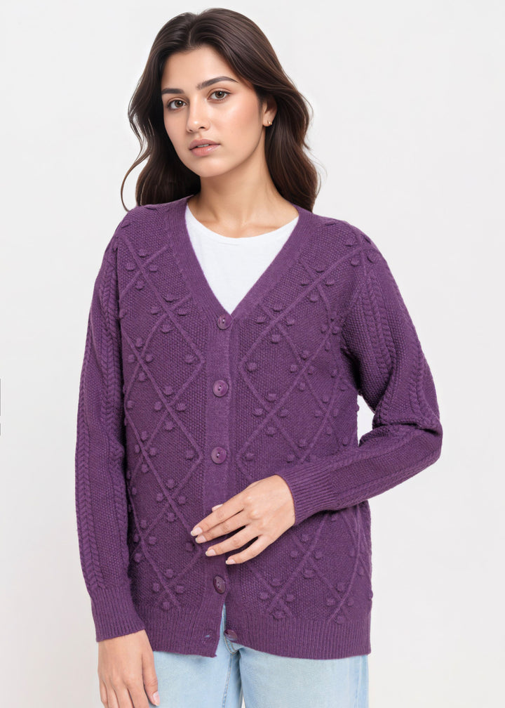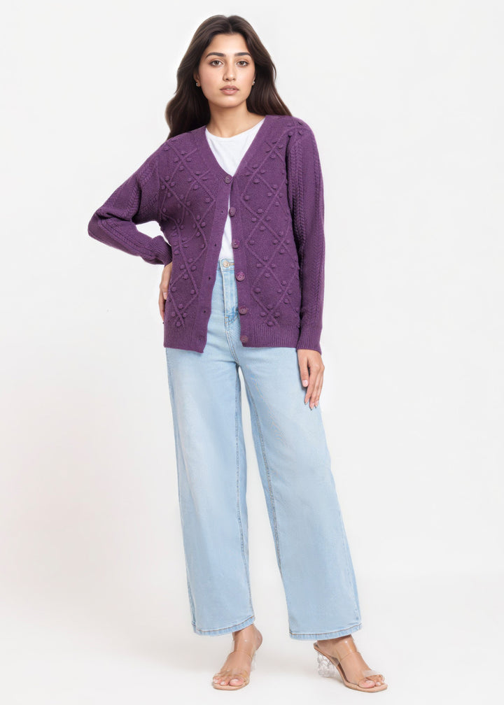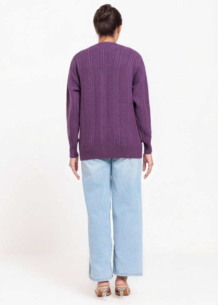 D-Purple-V-Cardigan Full Sleeves Sweater (25Y-056-67)
