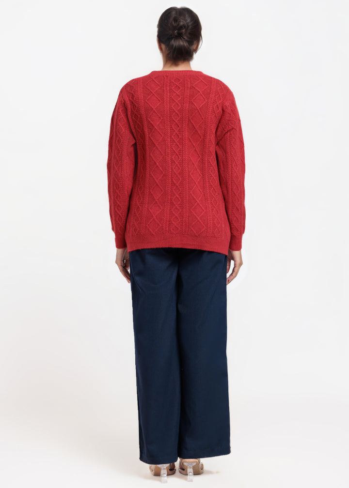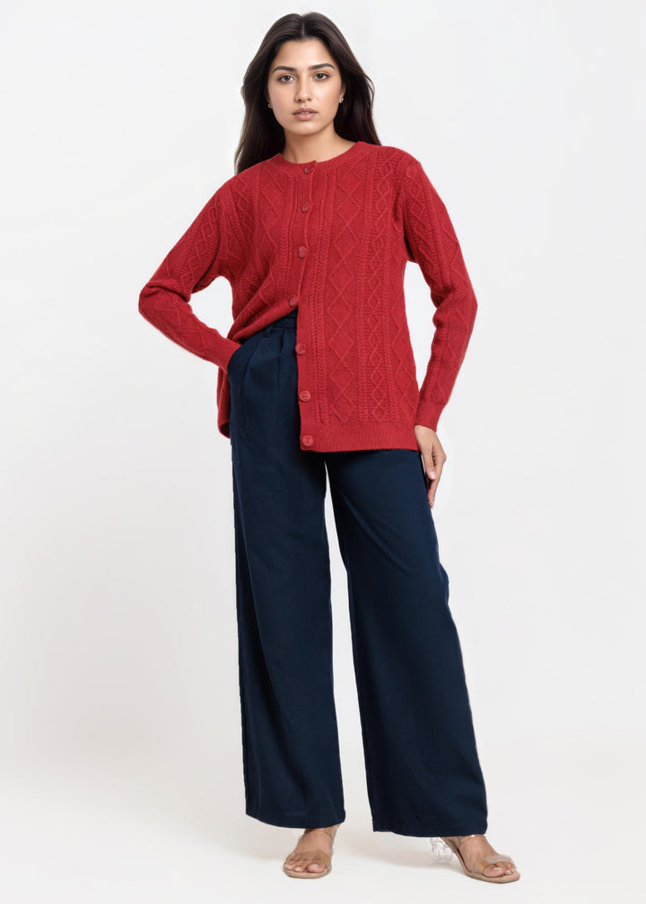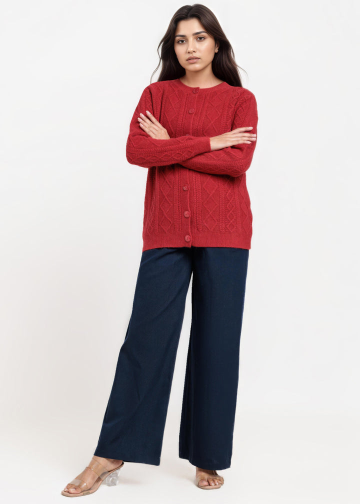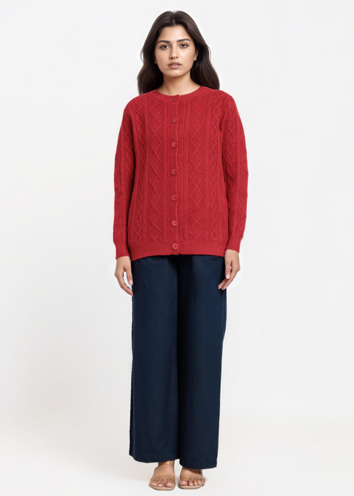 Maroon-Round Neck Full Sleeves Cardigan Sweater (25Y-057-67)