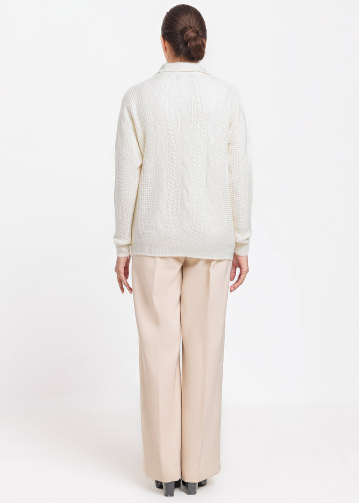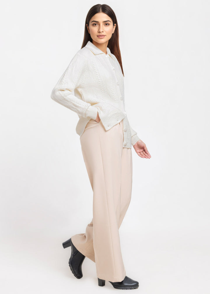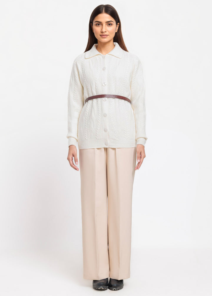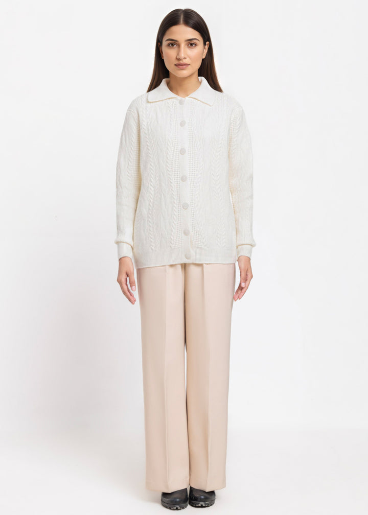 O-White-Wing Collar Cardigan Full Sleeves Sweater (25Y-058-67)