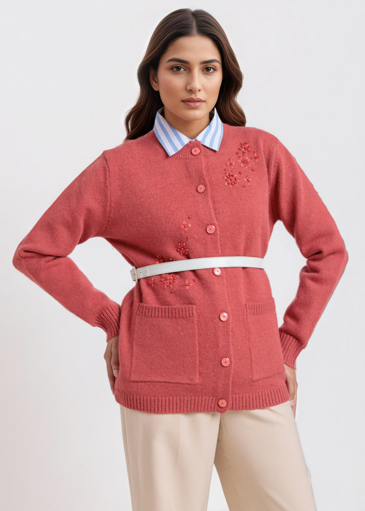 Brick-Round Neck Full Sleeves Cardigan Sweater (25Y-061-67)