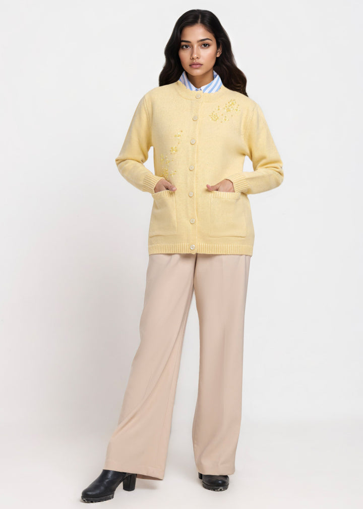 Lemon-Round Neck Full Sleeves Cardigan Sweater (25Y-061-67)