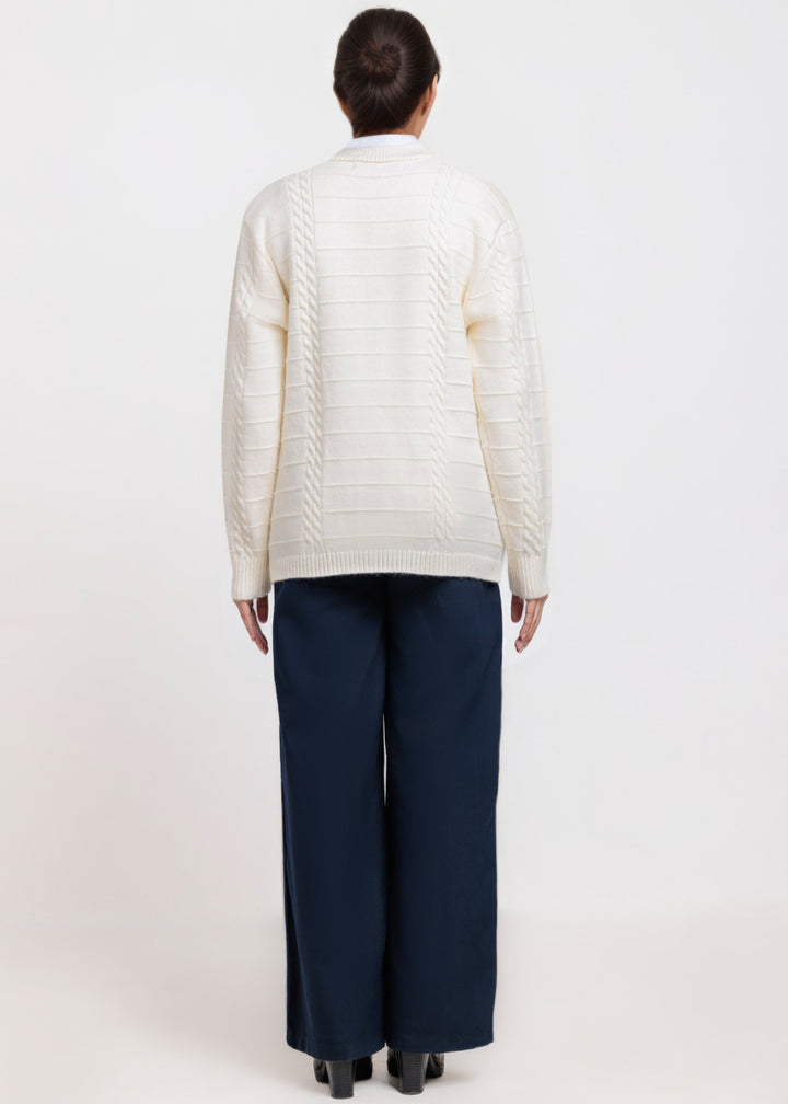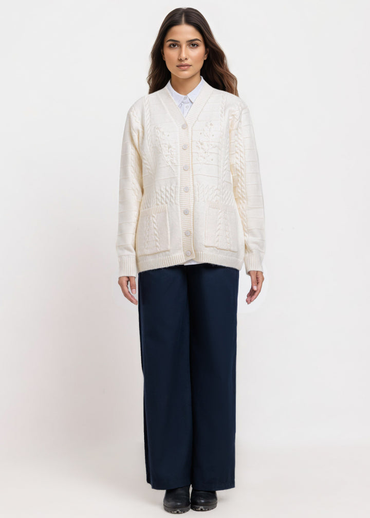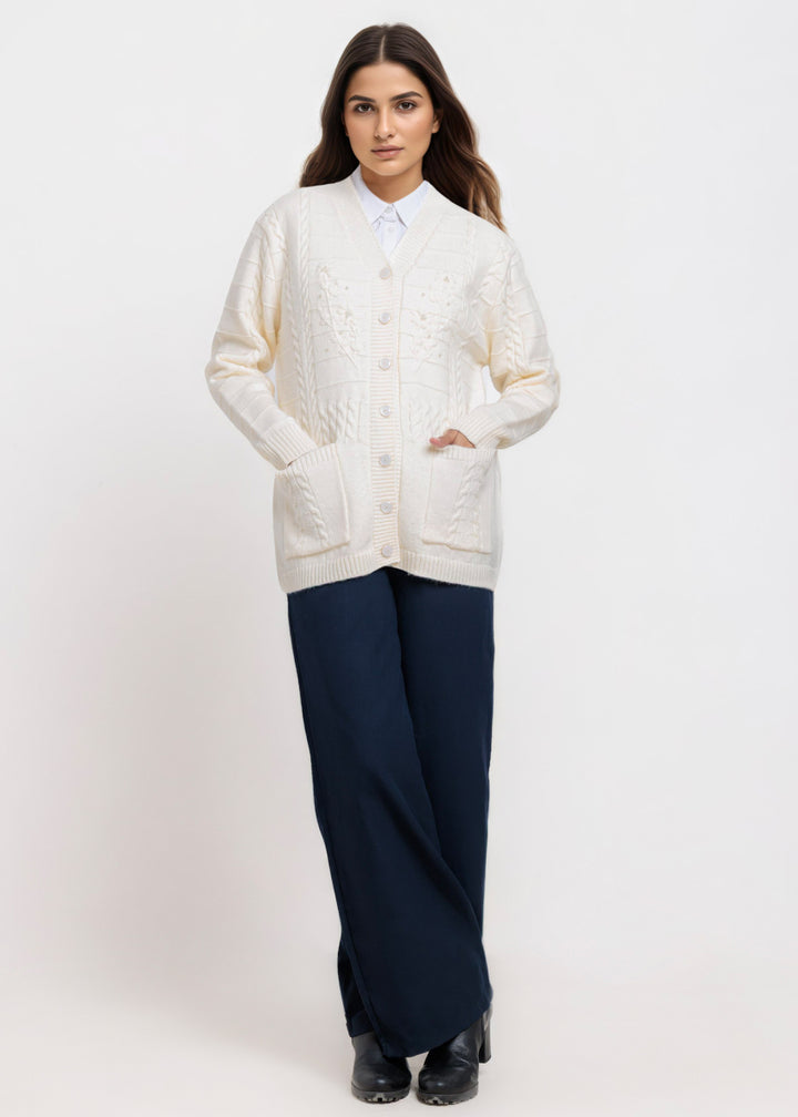 White-V-Cardigan Full Sleeves Sweater (25Y-062-67)