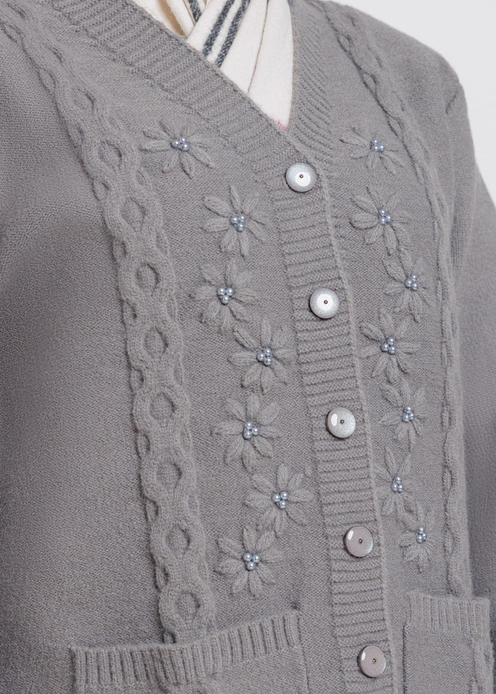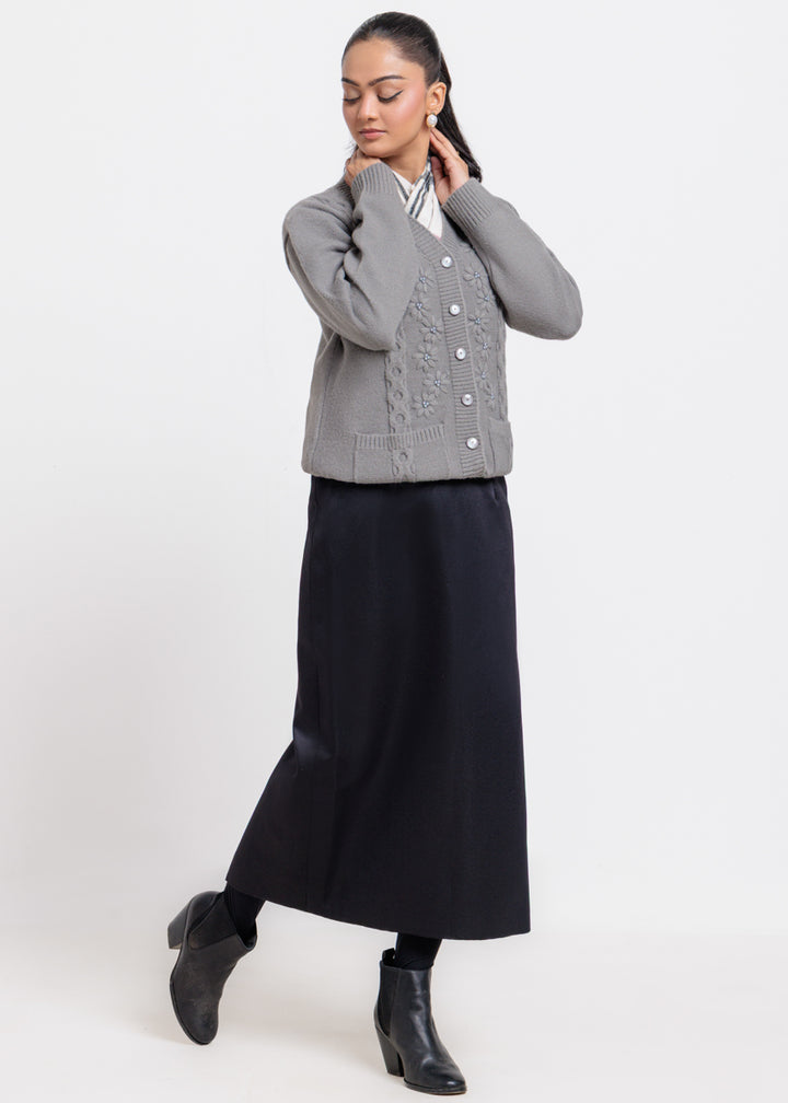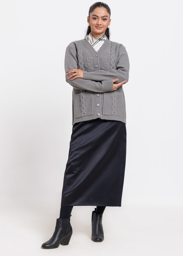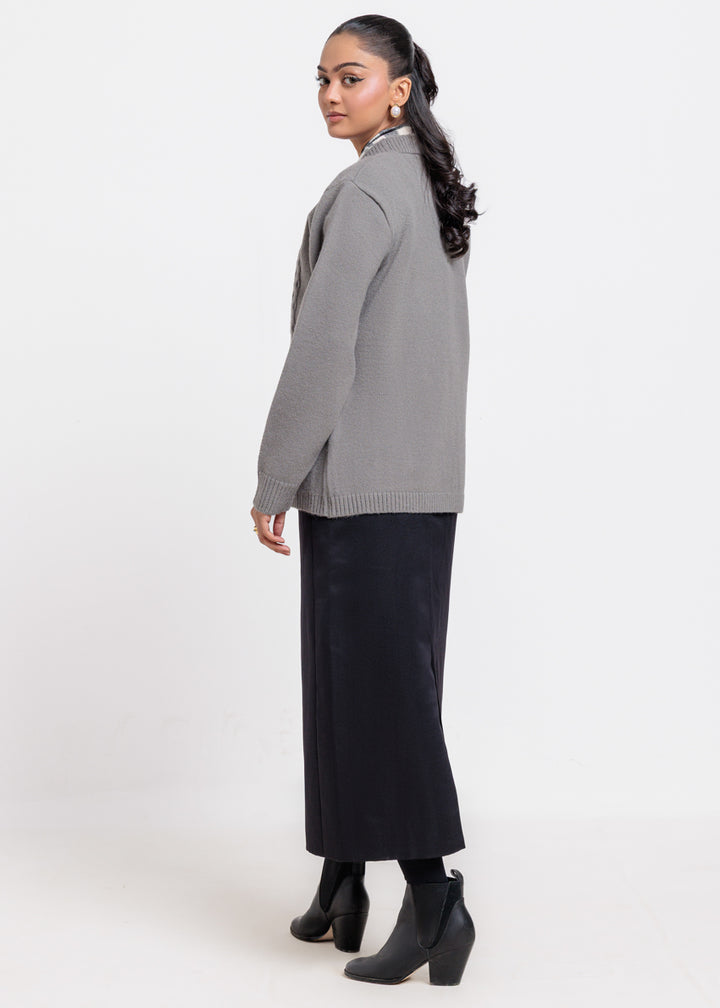 Grey-V-Cardigan Full Sleeves Sweater (25Y-063-67)
