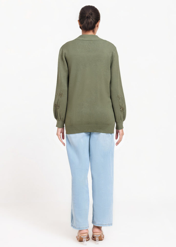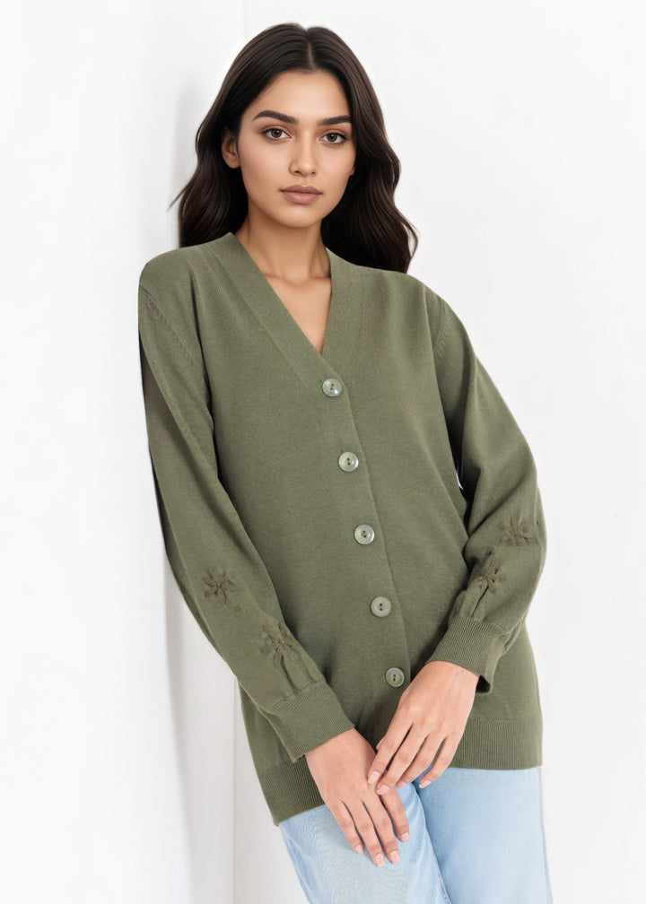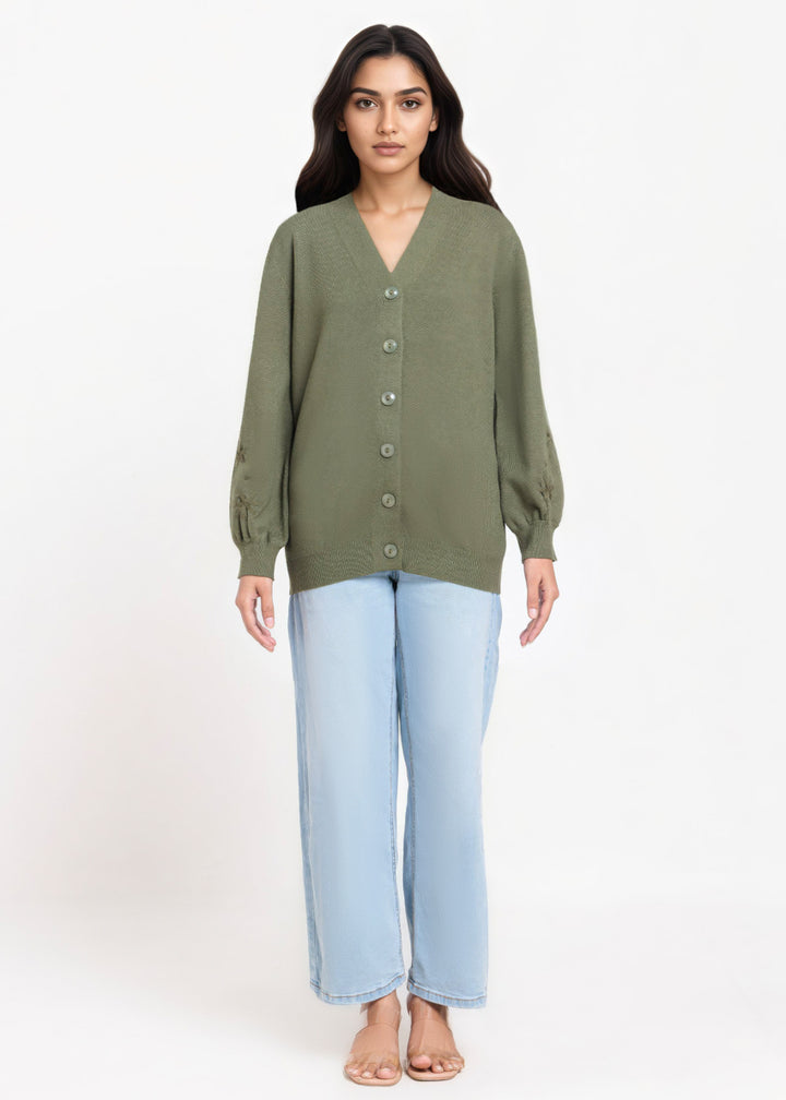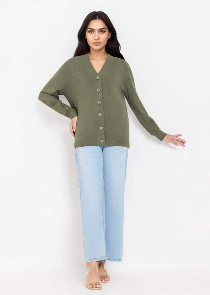 Olive-V-Cardigan Full Sleeves Sweater (25Y-064-67)