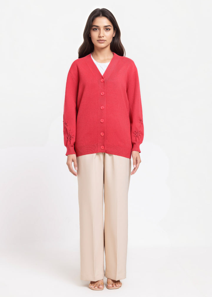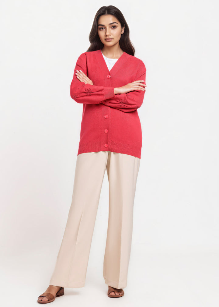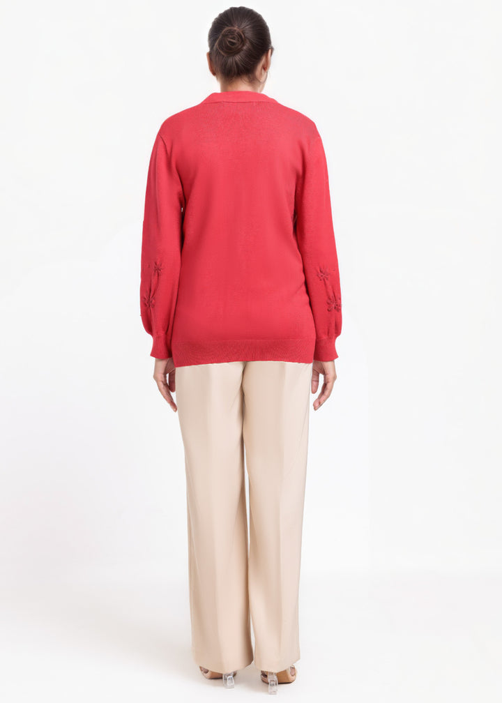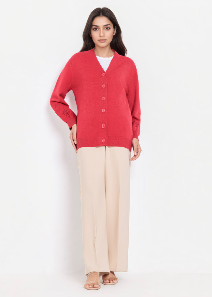 Red-V-Cardigan Full Sleeves Sweater (25Y-064-67)