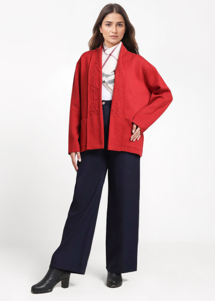 Maroon-V-Cardigan Full Sleeves Sweater (25Y-065-67)
