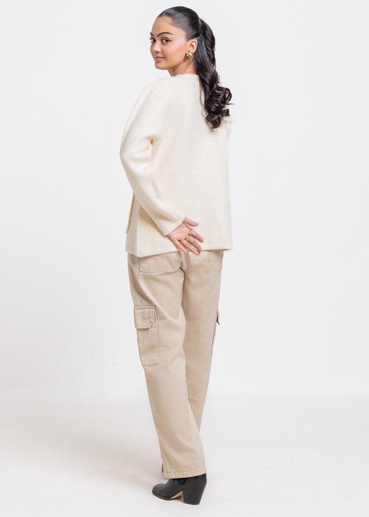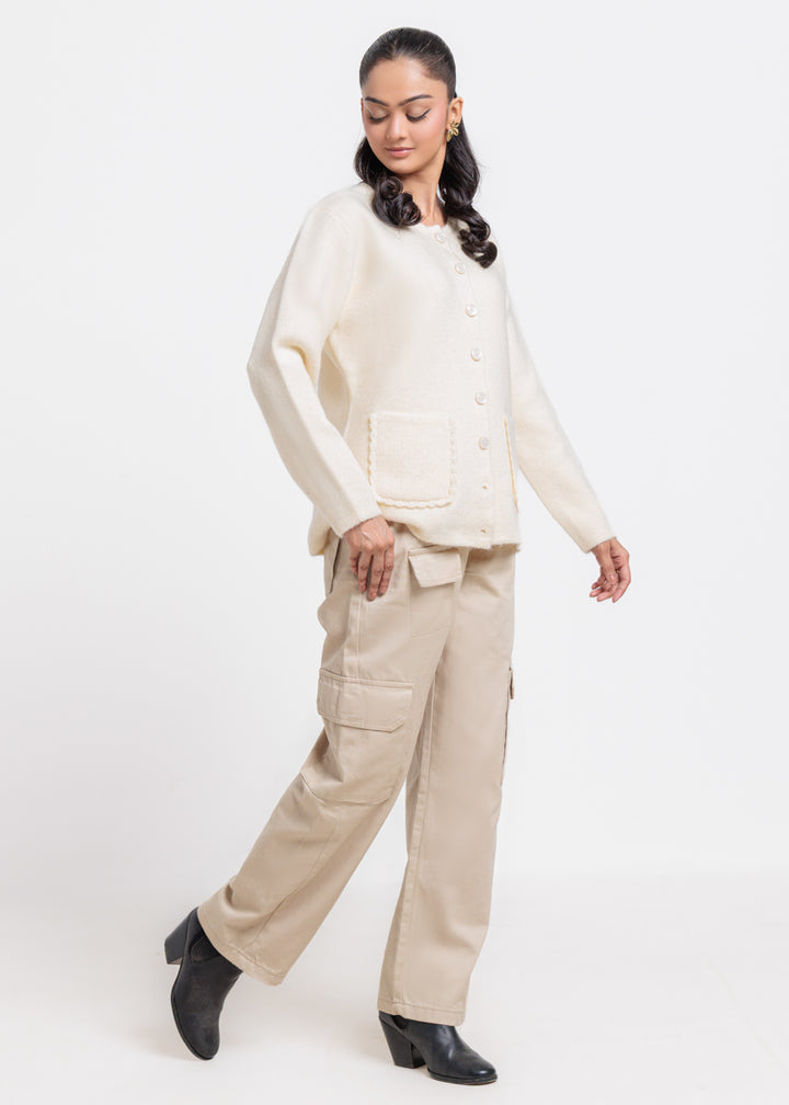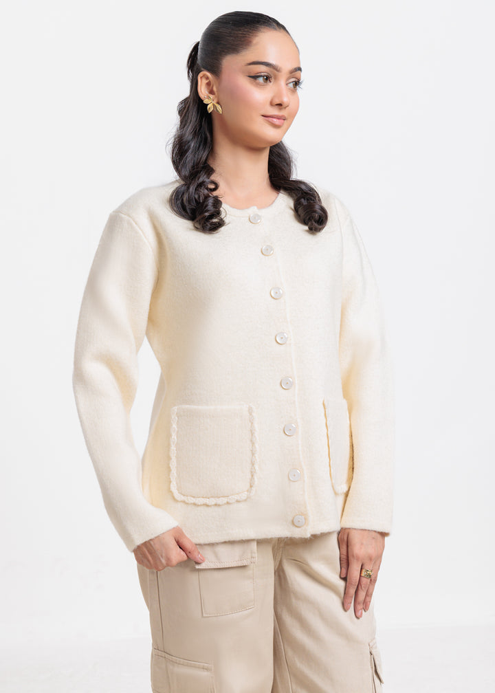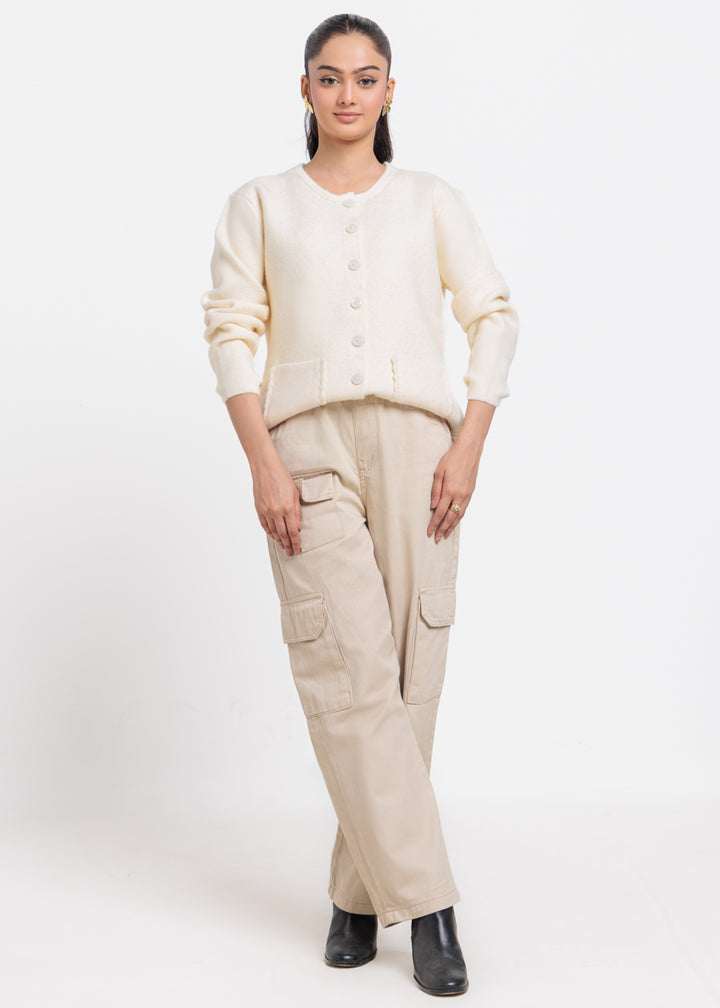 Cream-V-Cardigan Full Sleeves Sweater (25Y-066-67)