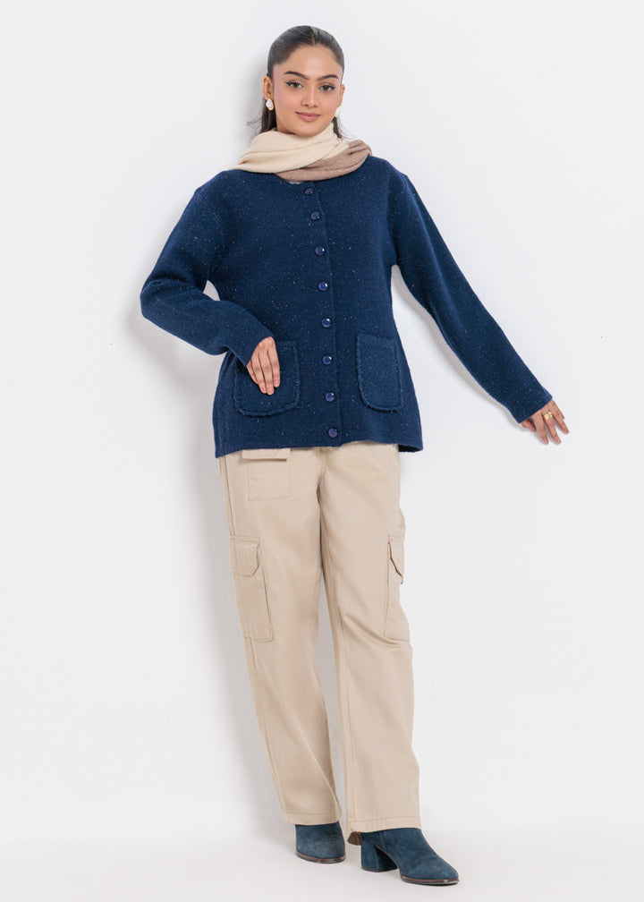 Navy-V-Cardigan Full Sleeves Sweater (25Y-066-67)