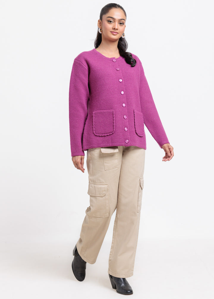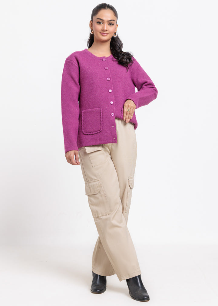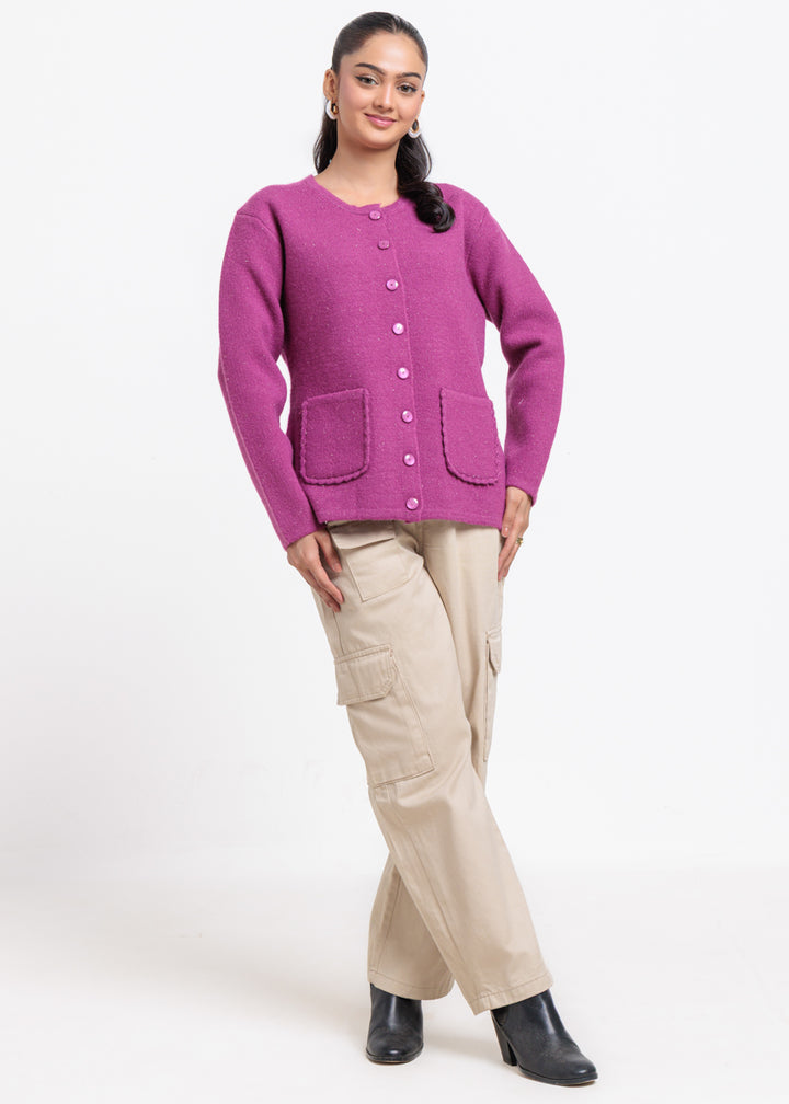 Purple-V-Cardigan Full Sleeves Sweater (25Y-066-67)