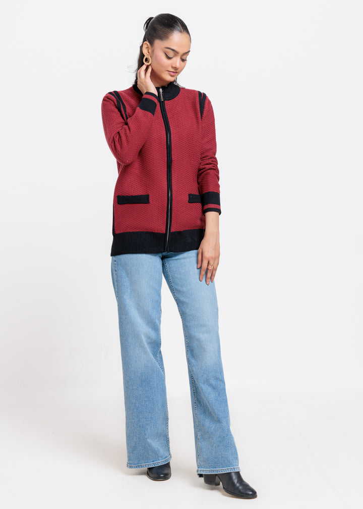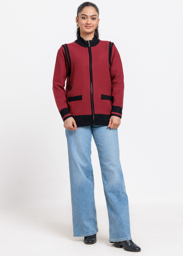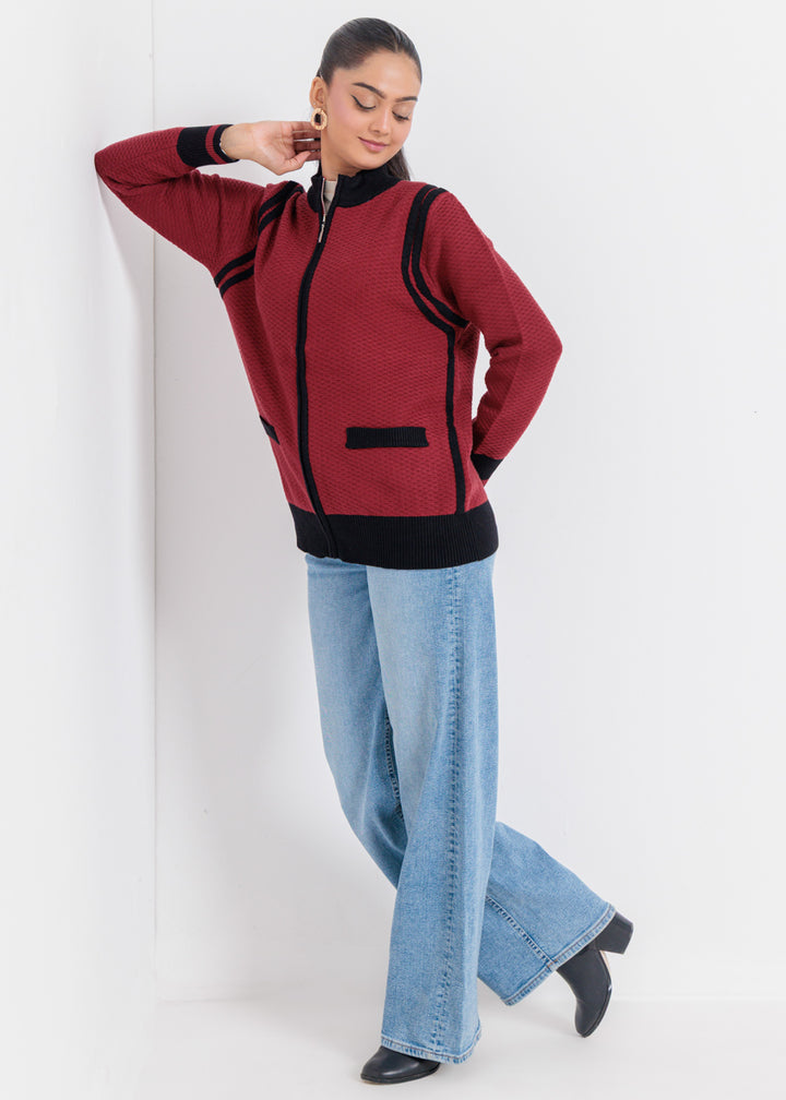 Maroon-Turtle Neck Zipper Full Sleeves Sweater (25Y-067-67)