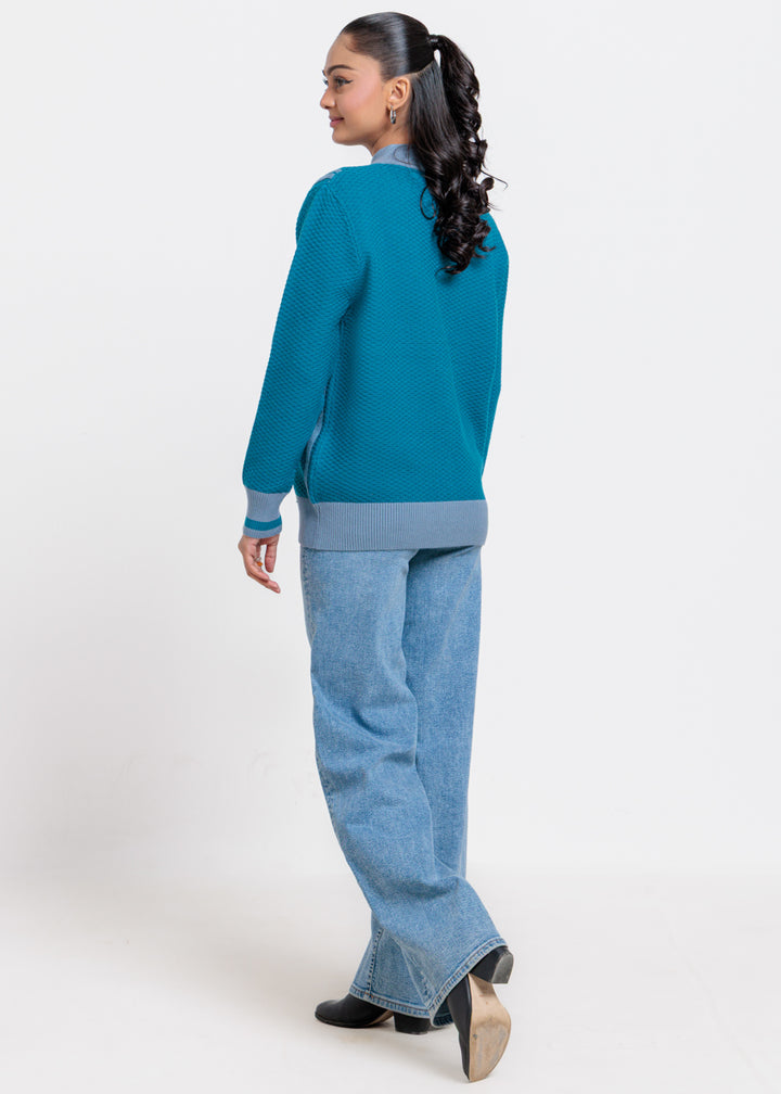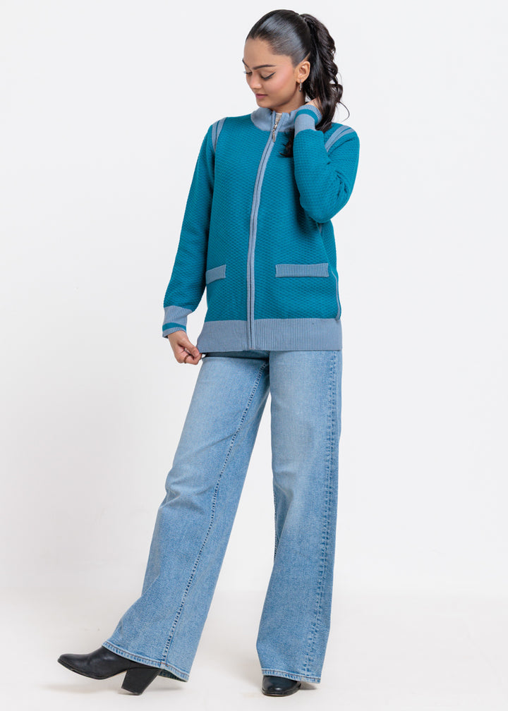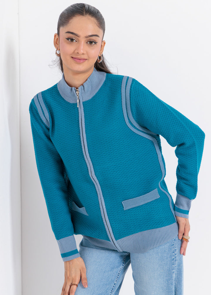 Teal-Turtle Neck Zipper Full Sleeves Sweater (25Y-067-67)