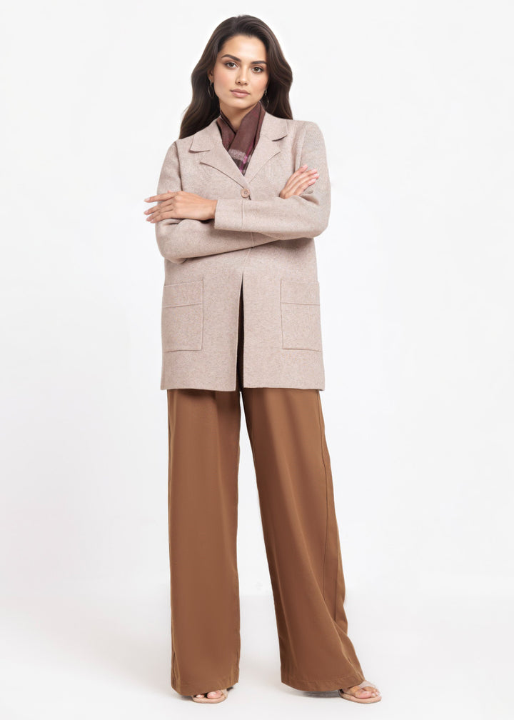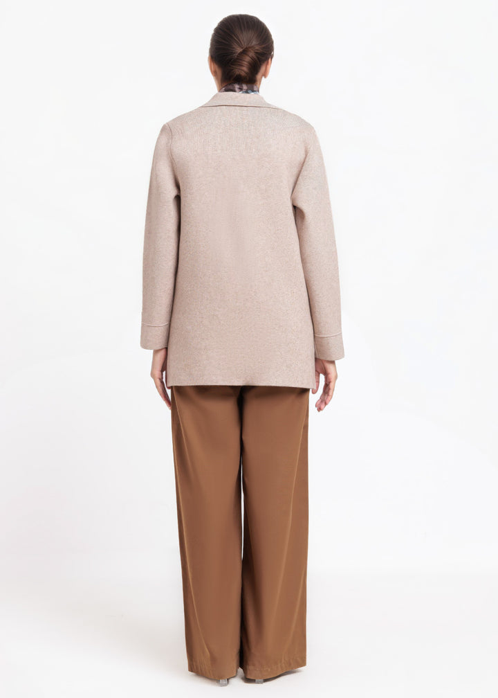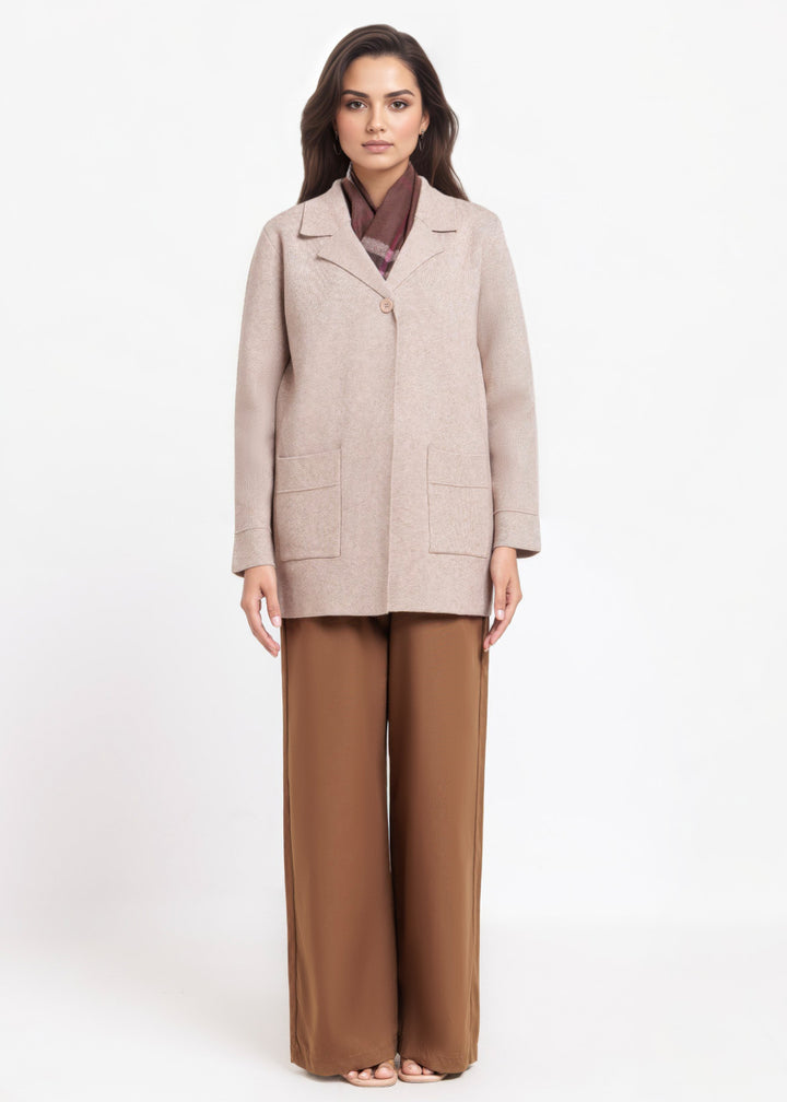 Beige-Notched Collar Full Sleeves Cardigan Sweater (25Y-074-67)