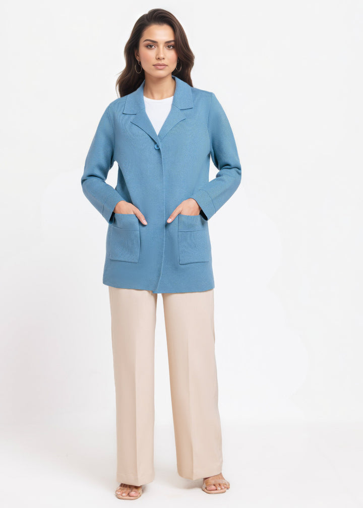 Blue-Notched Collar Full Sleeves Cardigan Sweater (25Y-074-67)