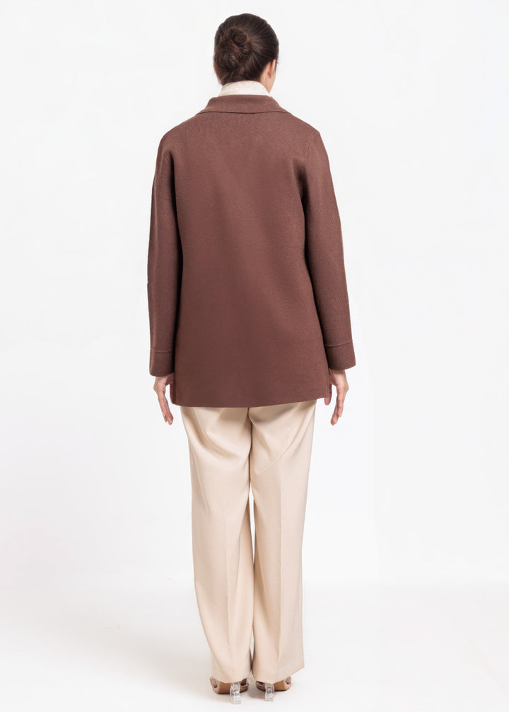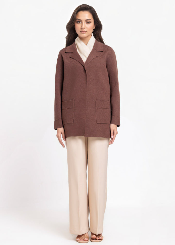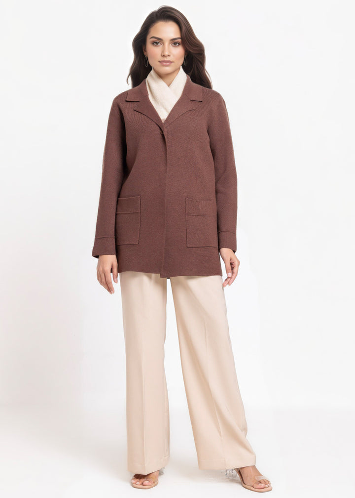 Brown-Notched Collar Full Sleeves Cardigan Sweater (25Y-074-67)