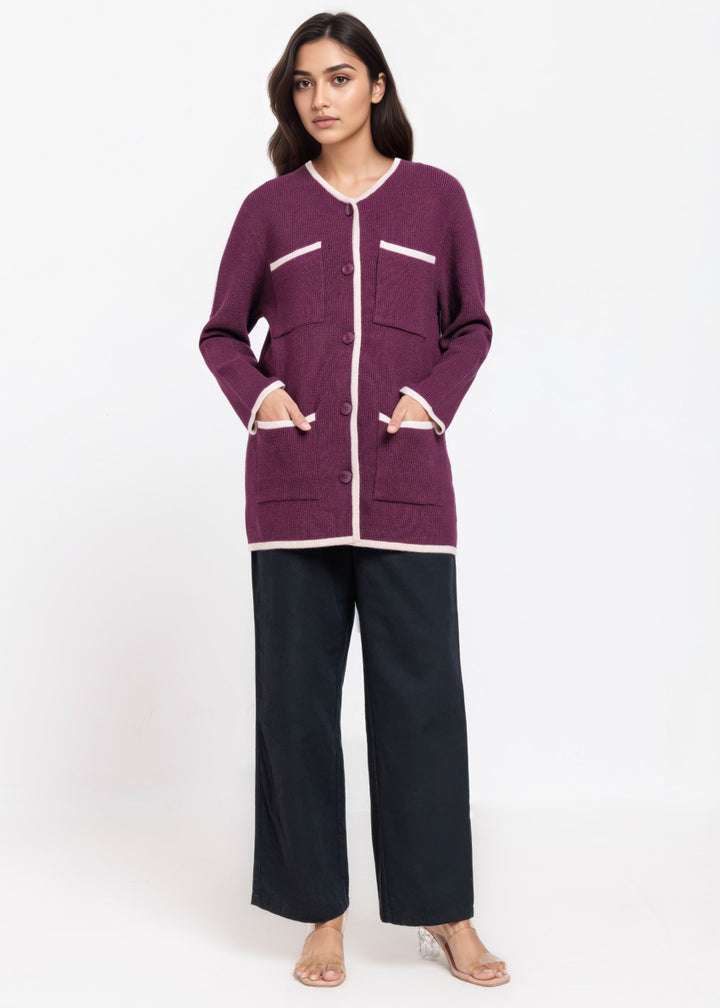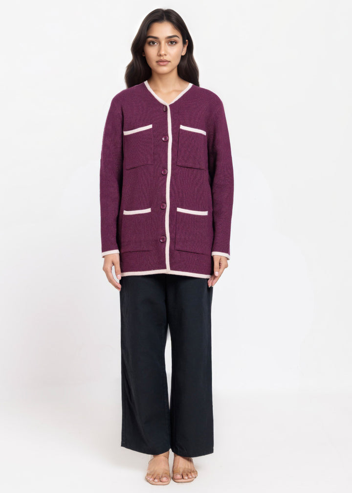 Grey-V-Cardigan Full Sleeves Sweater (25Y-075-67)