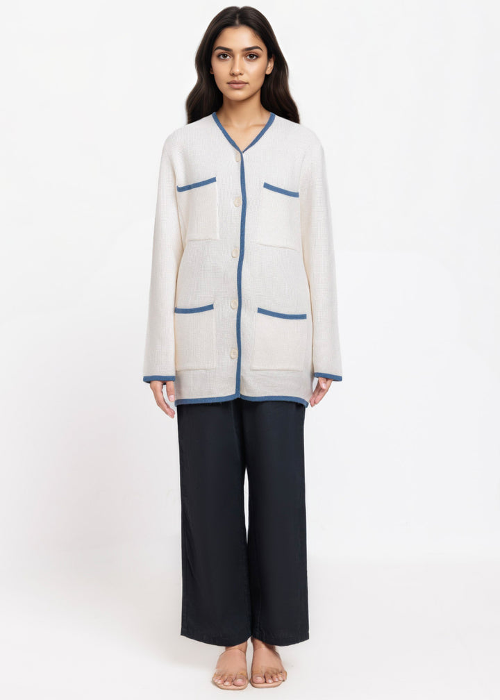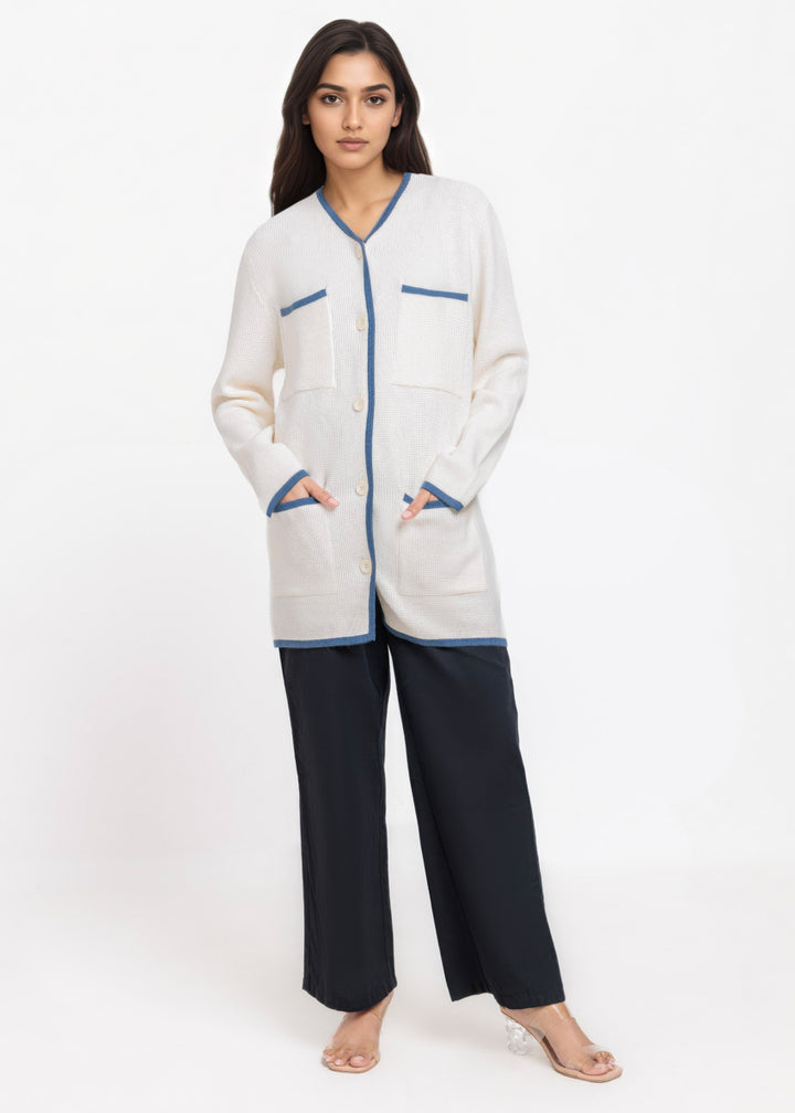 White-V-Cardigan Full Sleeves Sweater (25Y-075-67)