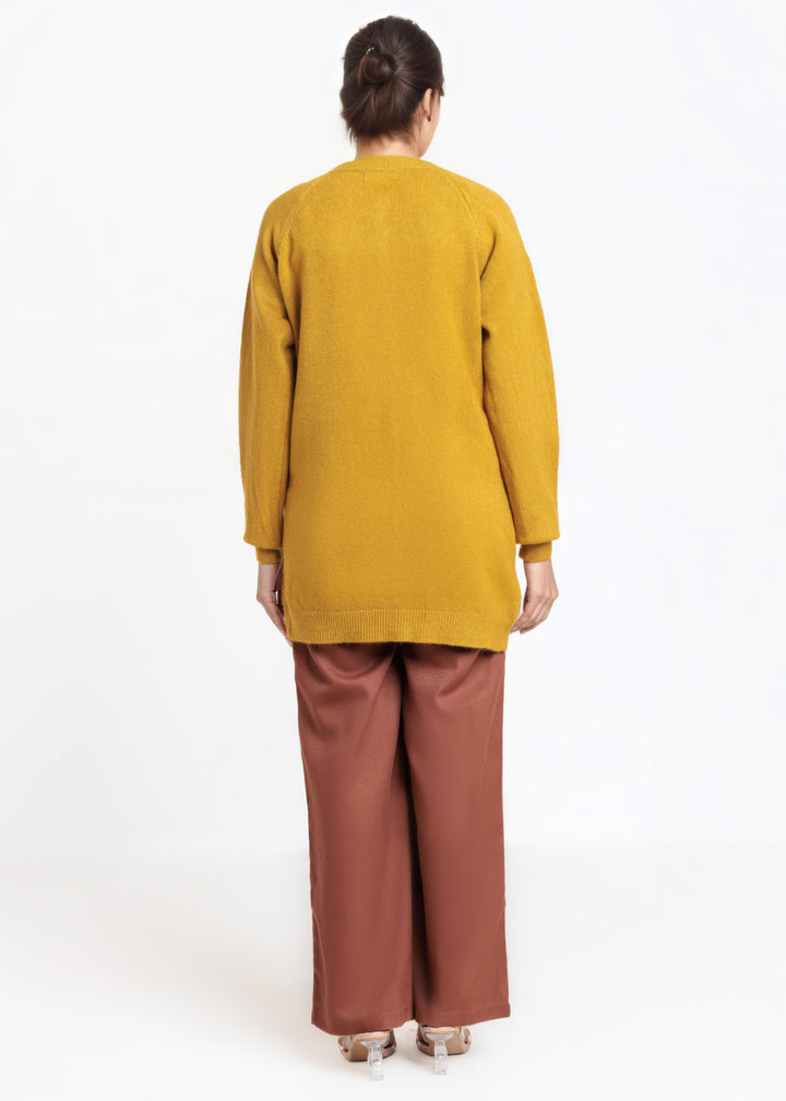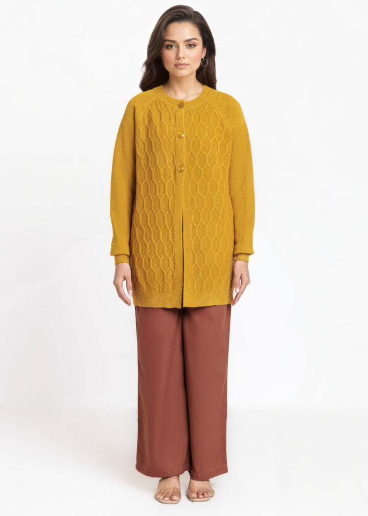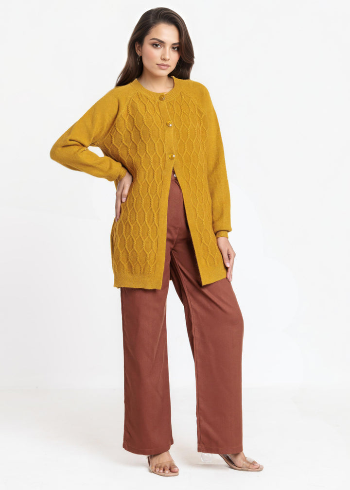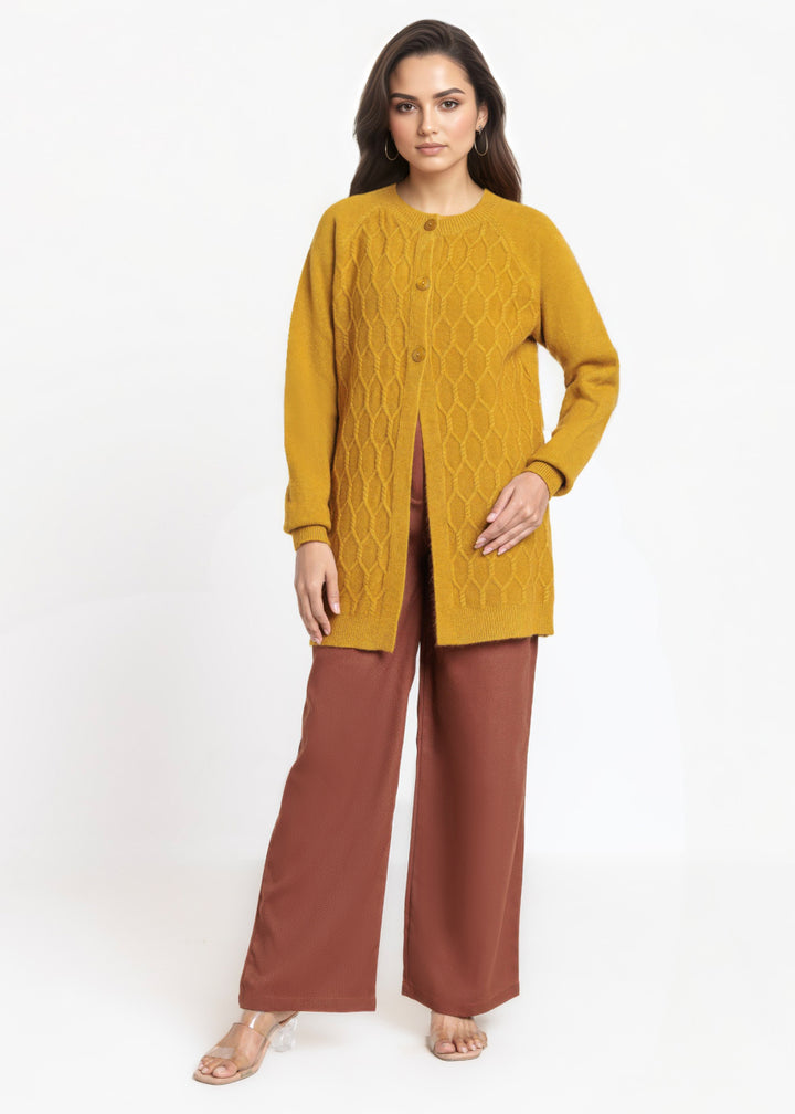 Mustard-Round Neck Full Sleeves Cardigan Sweater (25Y-076-67)