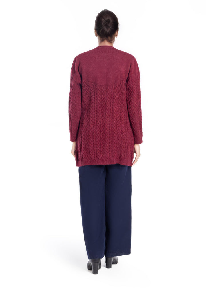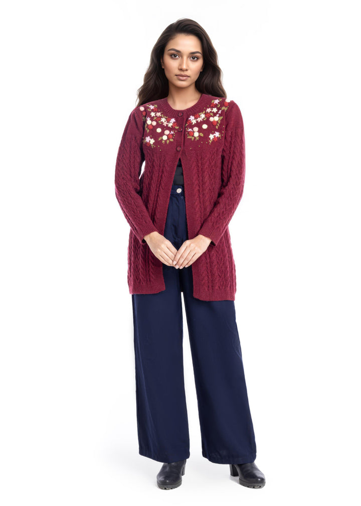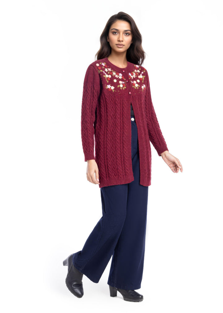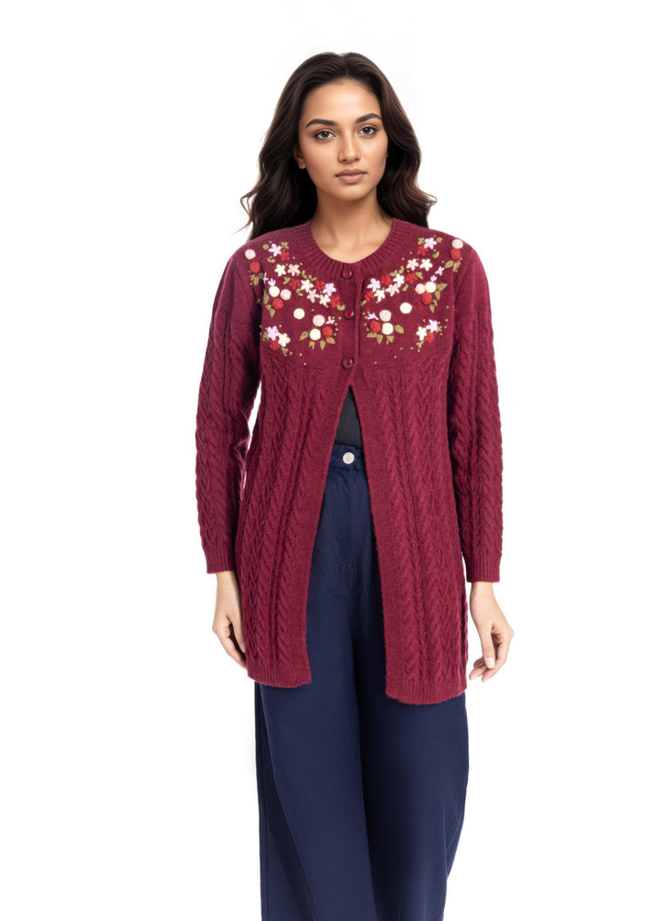 Maroon-Round Neck Full Sleeves Cardigan Sweater (25Y-077-67)