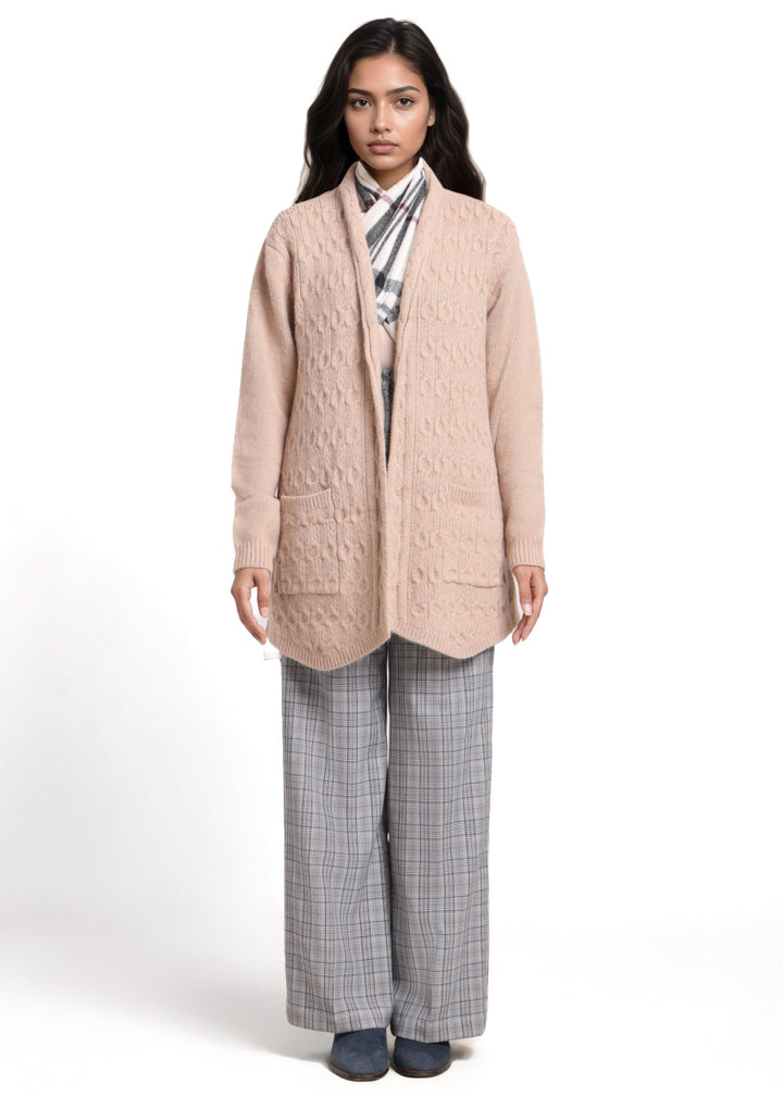 Beige-Shawl Collar Full Sleeves Cardigan Sweater (25Y-078-67)