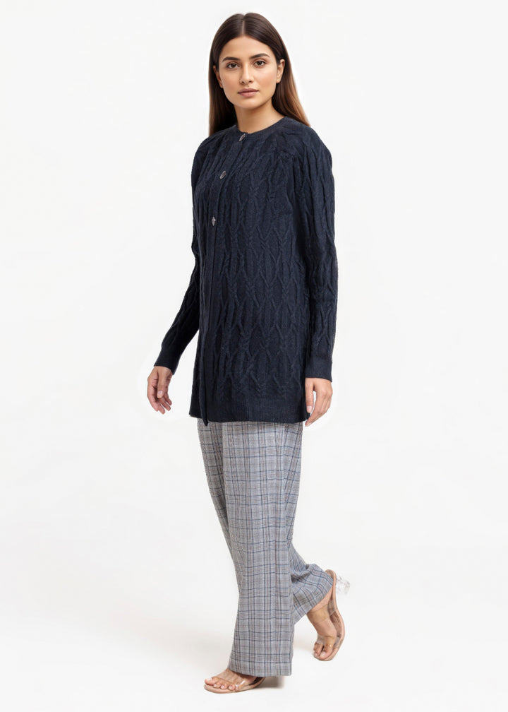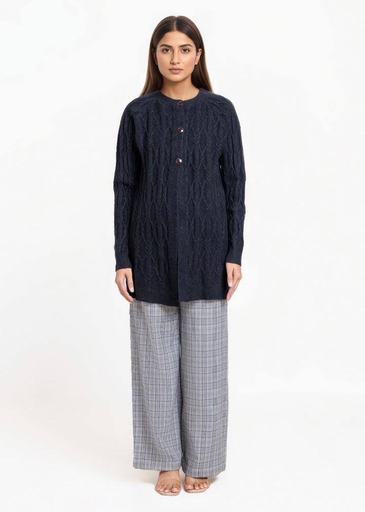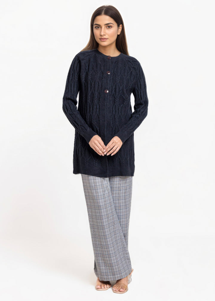 Black-Round Neck Full Sleeves Cardigan Sweater (25Y-084-67)