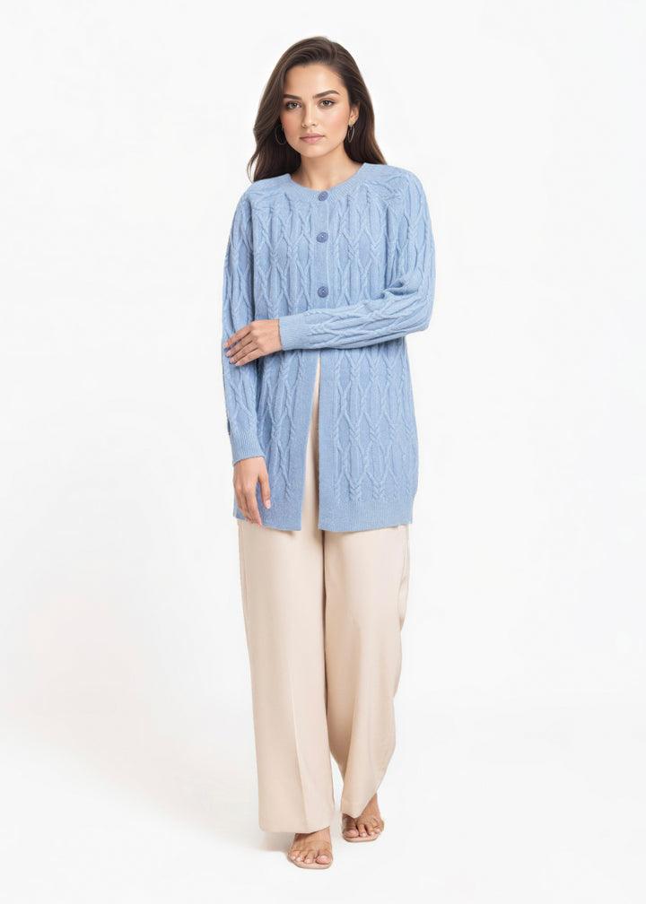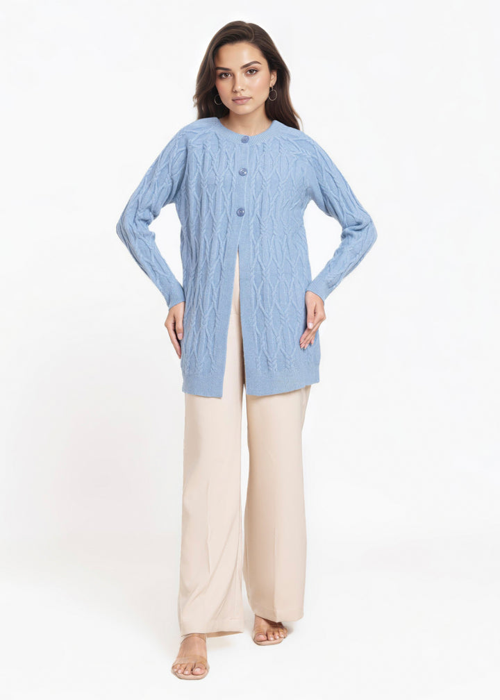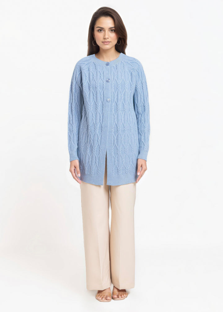 Blue-Round Neck Full Sleeves Cardigan Sweater (25Y-084-67)