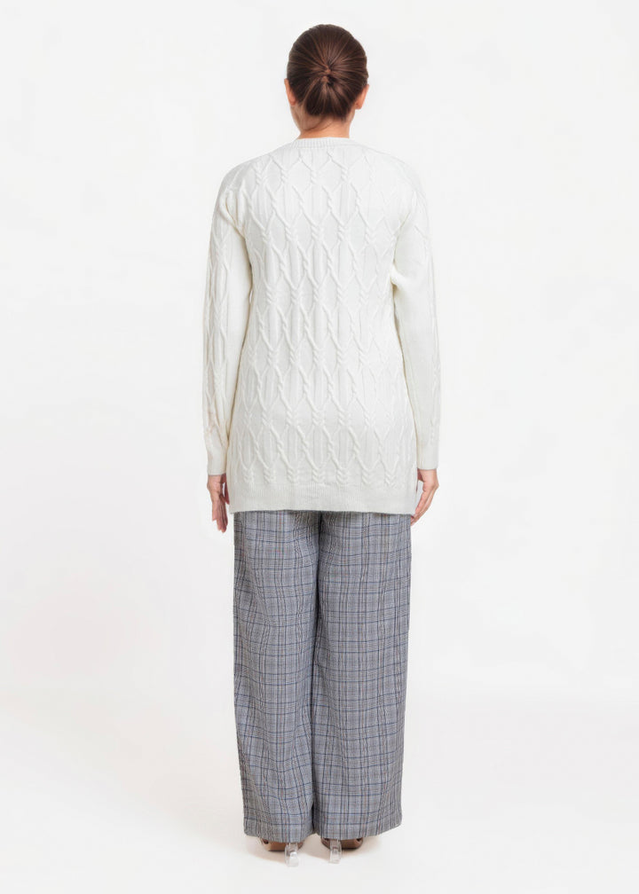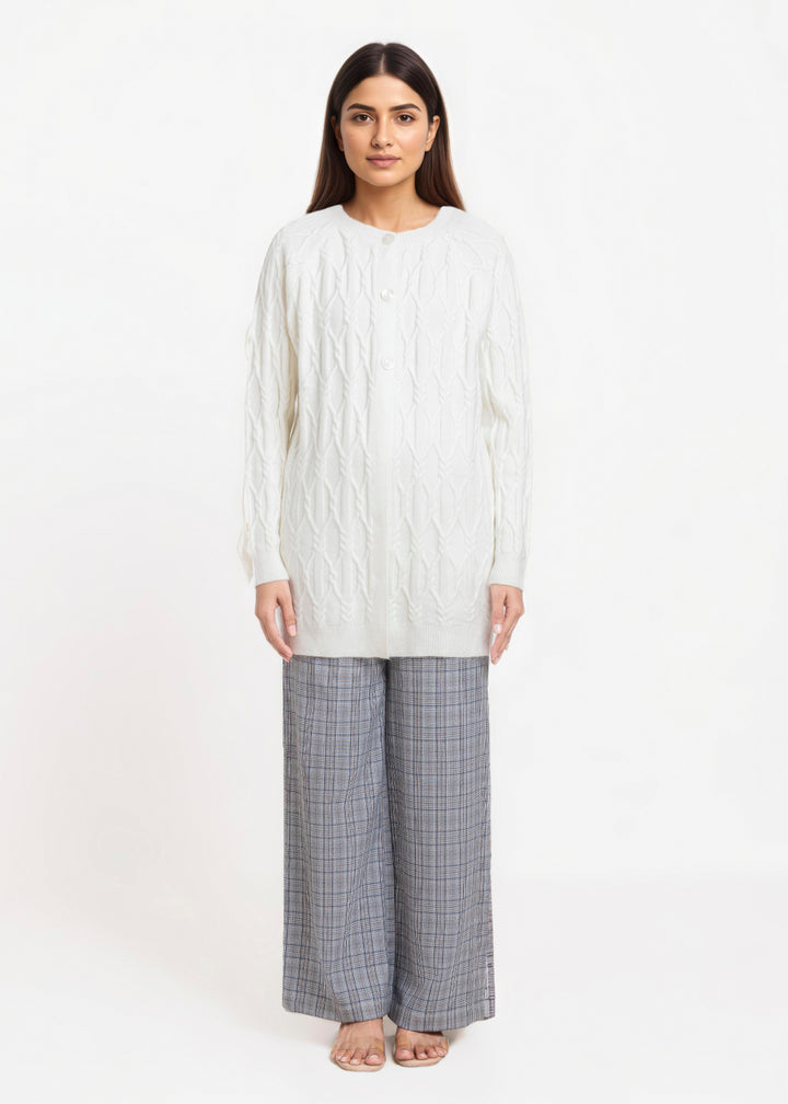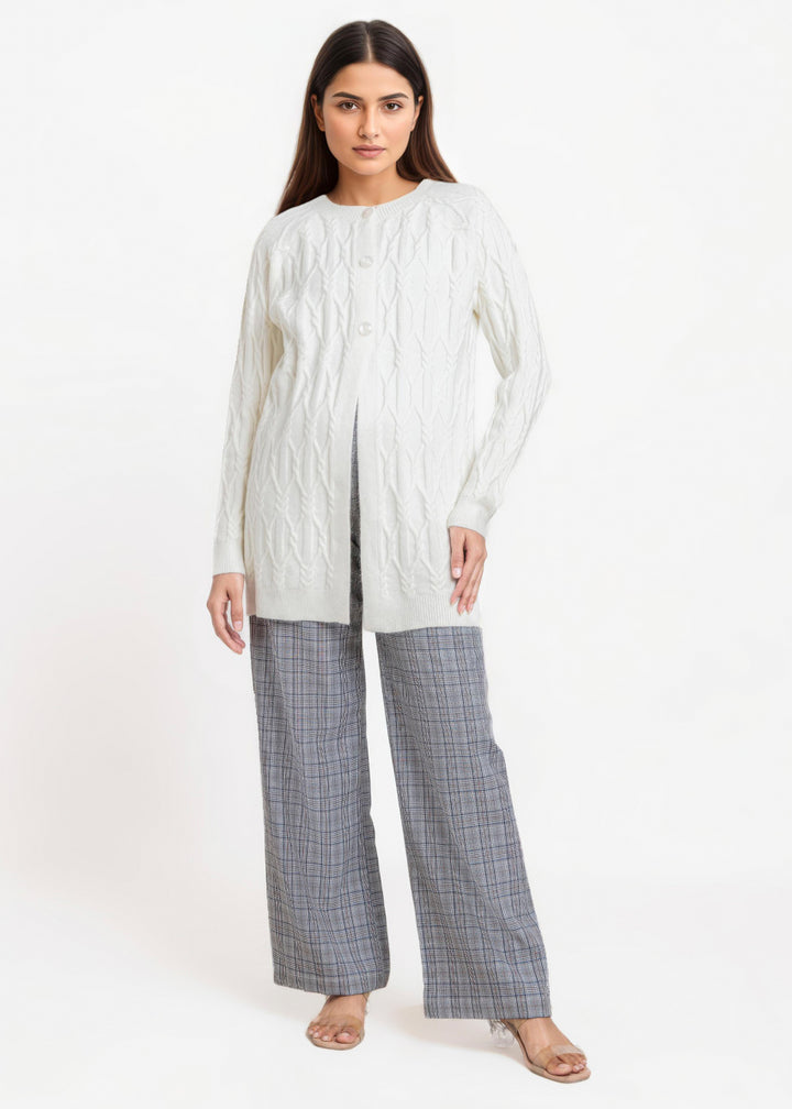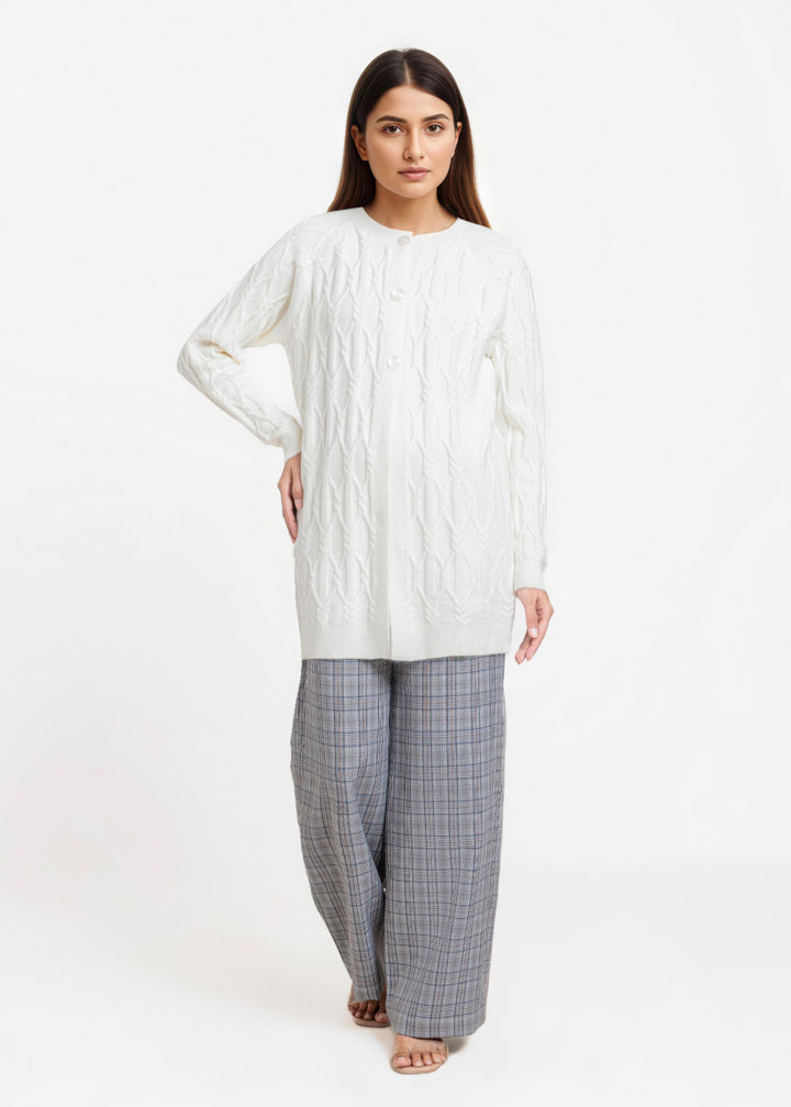 White-Round Neck Full Sleeves Cardigan Sweater (25Y-084-67)